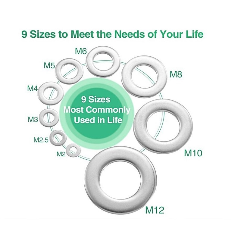 580PCS Spacer Metal 304 Stainless Steel Flat Washer Set M2-M12 Box Set Screw Washer Set