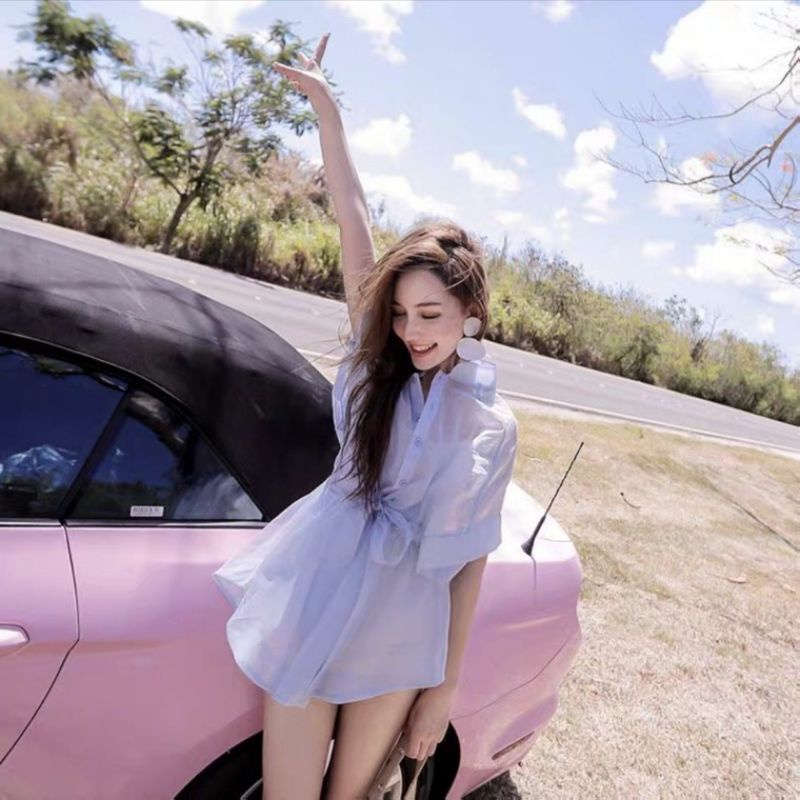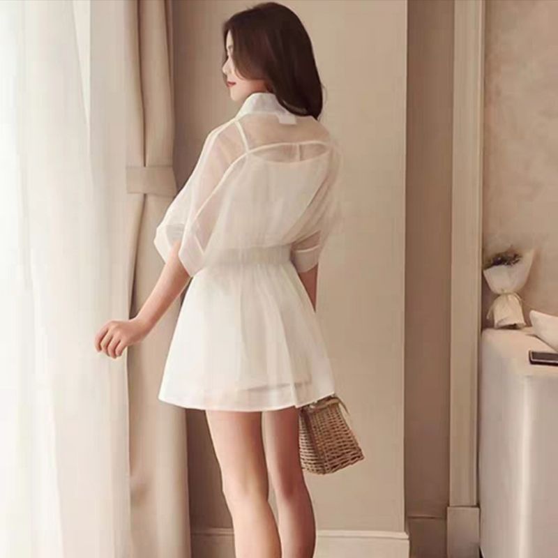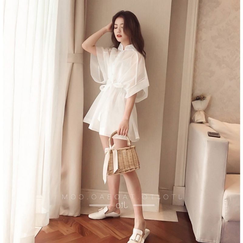 5863 Pakaian Baju Mini dress transparan ada inner santai pantai gaya anakmuda Korea Kekinian Fashion Baju Mini dress lengan pendek transparan ada inner spandek santai pantai kostum gaya Korea kekinian Auter luaran hijab modis taro biru putih hitam santai