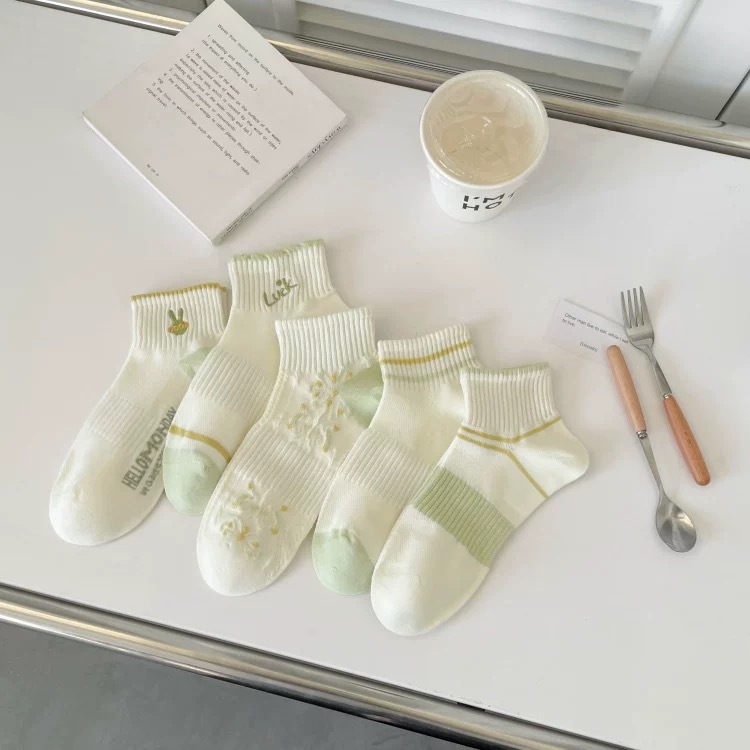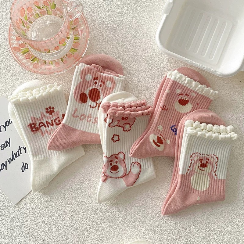5PASANG Kaos Kaki Pendek Bear Biru / Kaos Kaki Wanita Fashion Ala Korea / Kaos Kaki Beruang Biru Putih
