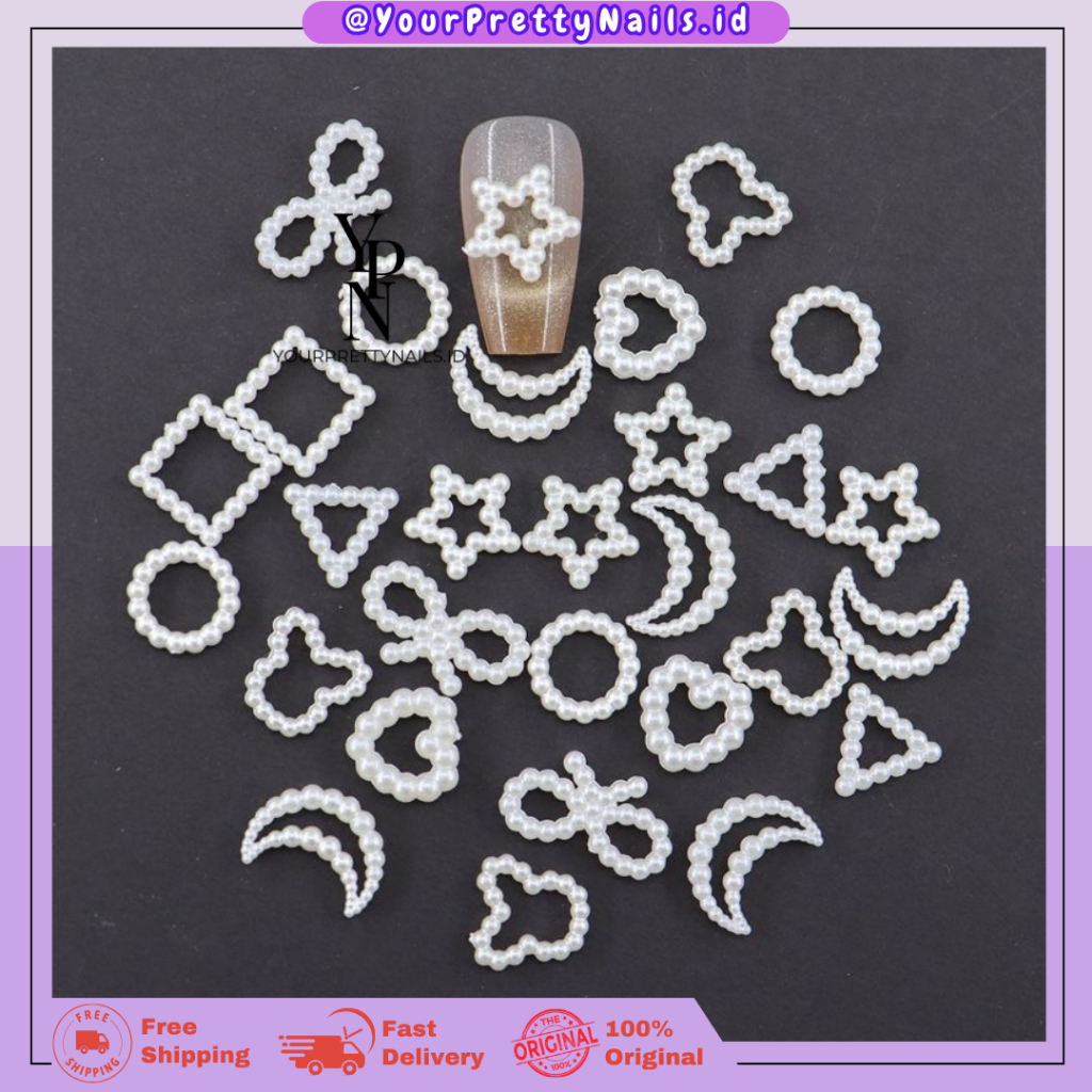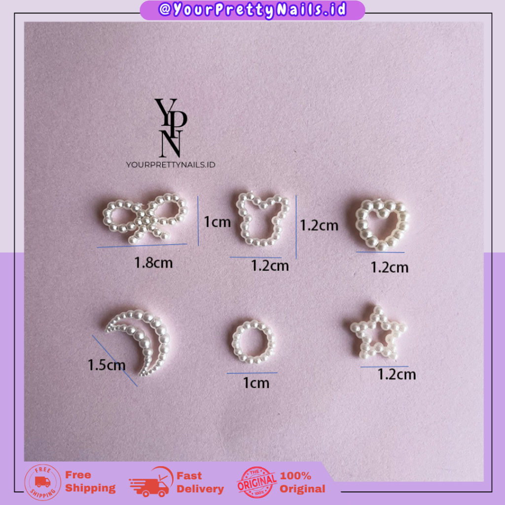 5PCS Manik Pearl Ivory White Permata Aksesoris Kuku Love Pita Bulat / Aksesoris Nail Art Hairpin