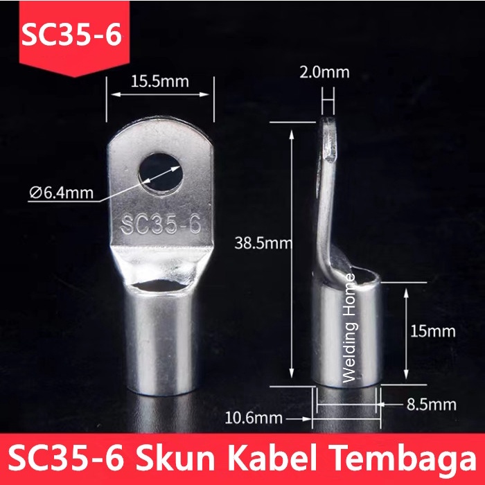 5PCS Skun Kabel Scun Lug SC 35mm Lubang Baut 6mm 8mm 10mm 35-6 35-8 35-10mm Konetor Cable