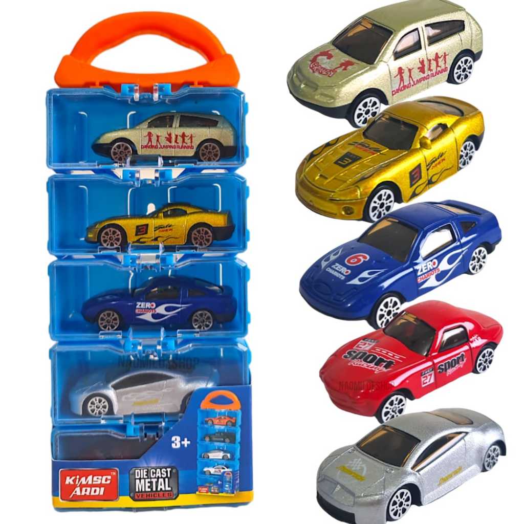 5pc diecast mobil + koper mobil mainan mobil mobilan anak miniatur mobil die cast set 5