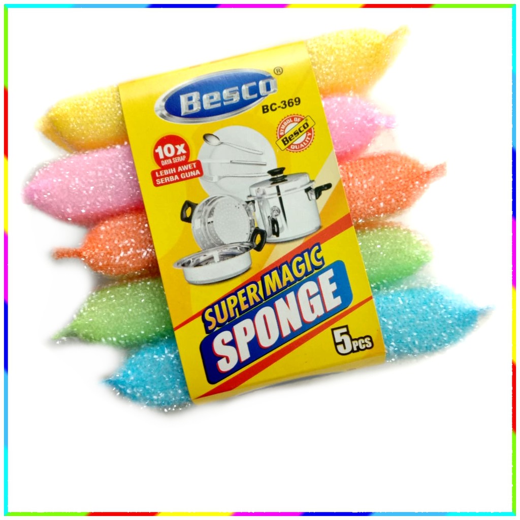5x [lima biji] spon BESCO super magic sponge SPON / SPONS CUCI PIRING WARNA WARNI SERBAGUNA