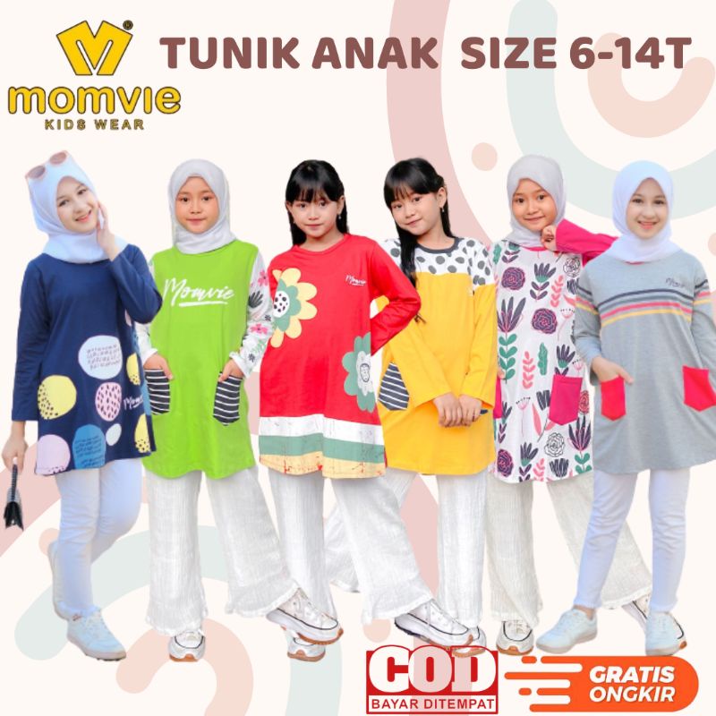 6-14T BAJU KAOS TUNIK ANAK PEREMPUAN 6 7 8 9 10 11 12 13 14 TAHUN POCK TUNIK MOMVIE