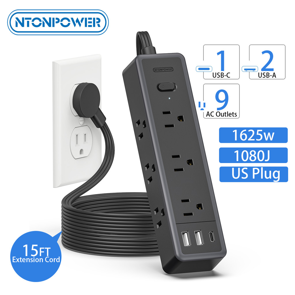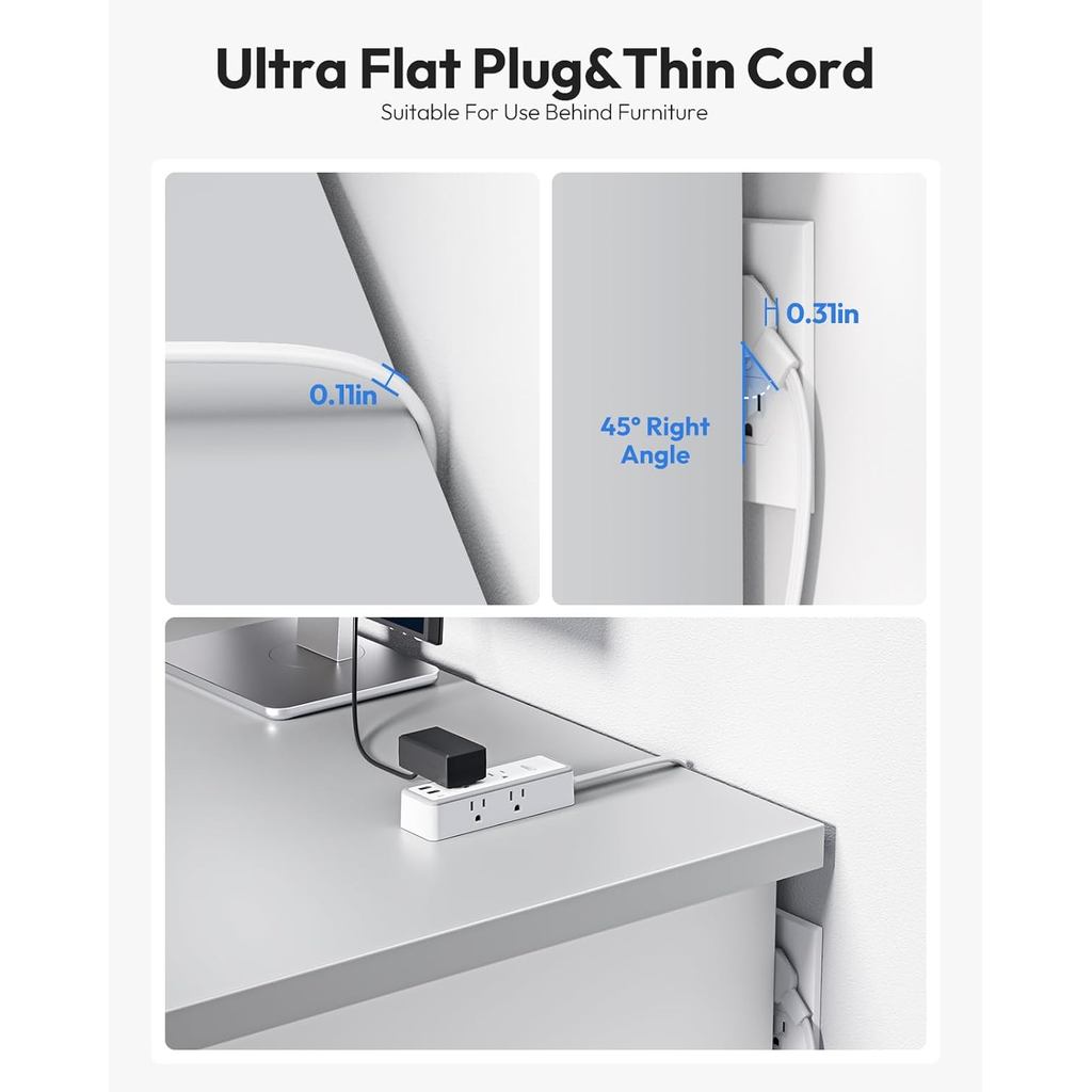 6 AC Outlet Power Strip with 2 USB-A 1 USB-C Ports US Plug 25FT Extra-long Extension Cord (3/4.6M)