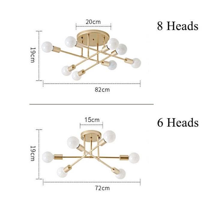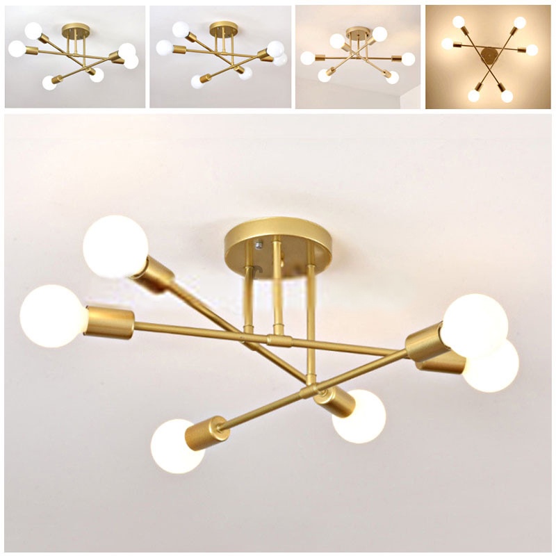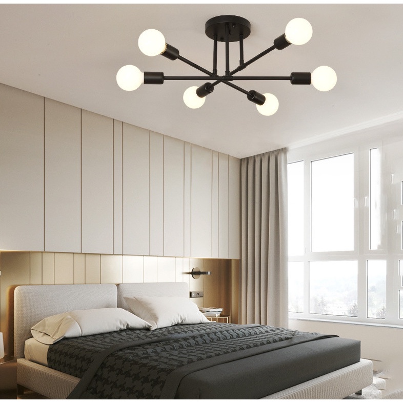 6 Lampu LED Lampu Besi Tempa Gaya Industri Lampu Langit-langit Minimalis Nordic Lampu Laba-laba Berkepala Banyak Lampu Gantung Estetika Langit-langit Modern Lampu Hias Alat Penerangan