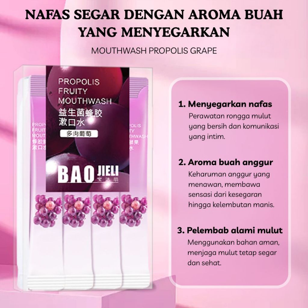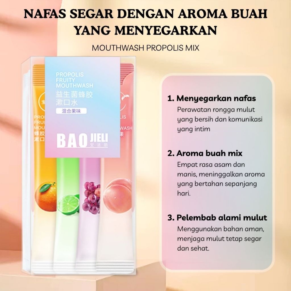 BOAE Mouthwash Propolis Sachet 12ml isi 20pcs Obat Kumur Rasa Buah Penghilang Bau Mulut Wangi VP098