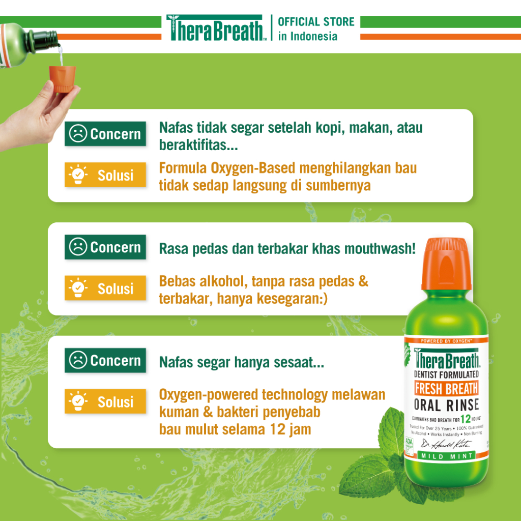 TheraBreath Dentist Formulated Fresh Breath Oral Rinse - Mild Mint 1L TWINPACK