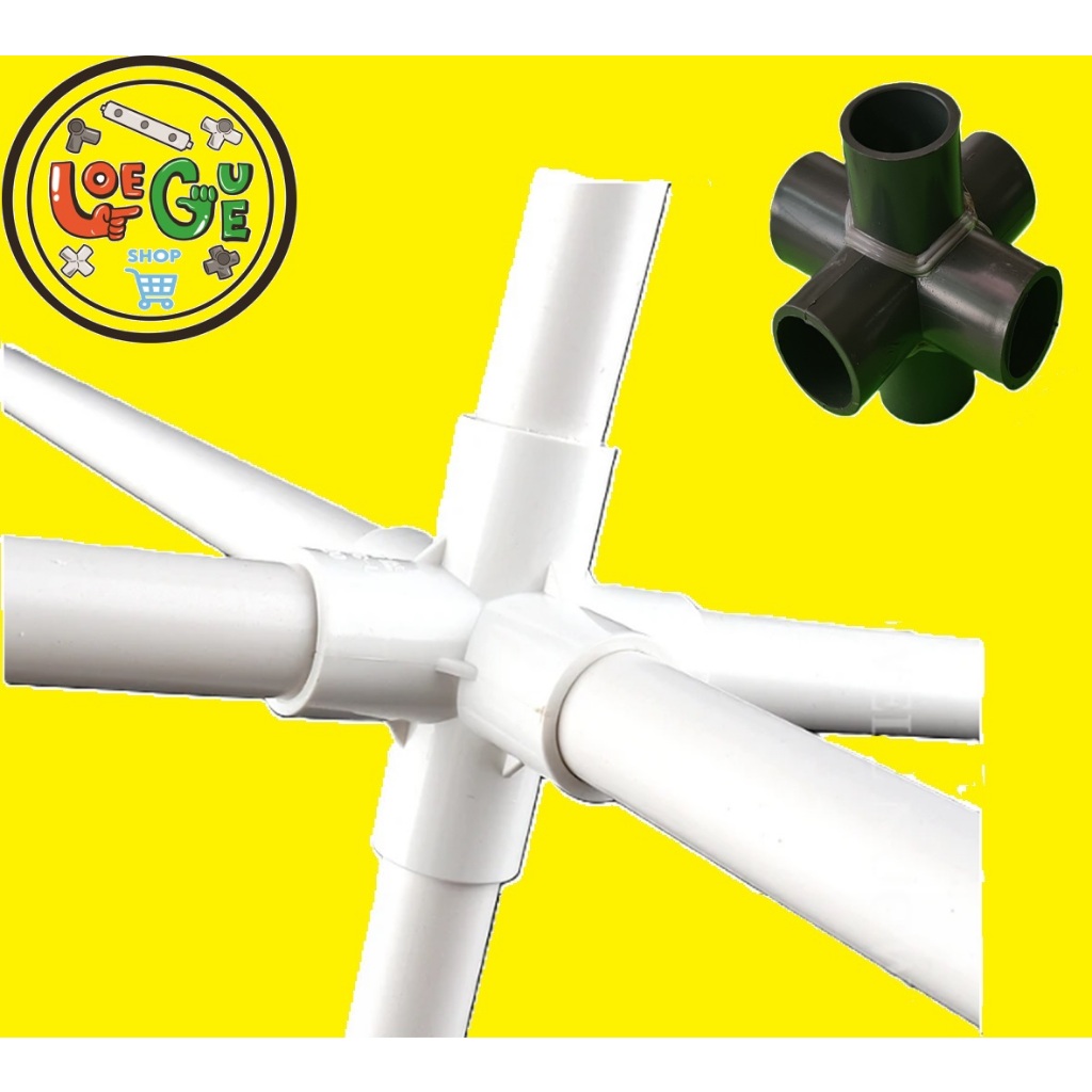 6 Way sambungan konektor fitting tee elbow pipa pvc 6 arah side Tee ukuran 1/2" , 3/4" , 5/8" & 1" inch atau ID 16mm, 20mm, 22mm, 26mm & 32mm rak hidroponik