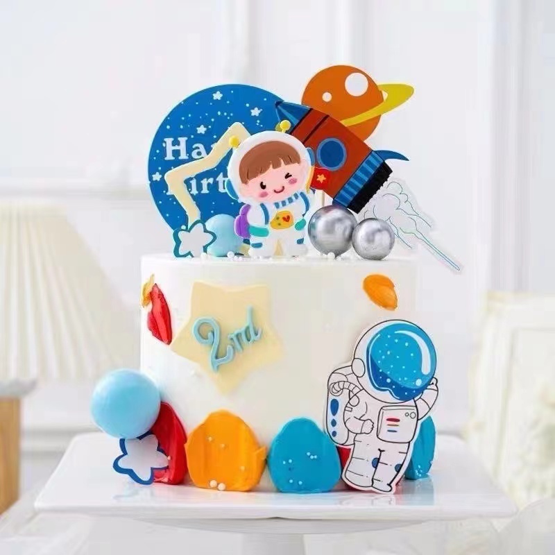 6 pcs Toppers Kue Astronot Planet Luar Angkasa Tema Planet Luar Angkasa Perlengkapan Pesta Ulang Tahun Anak Dekorasi Kue Sekali Pakai