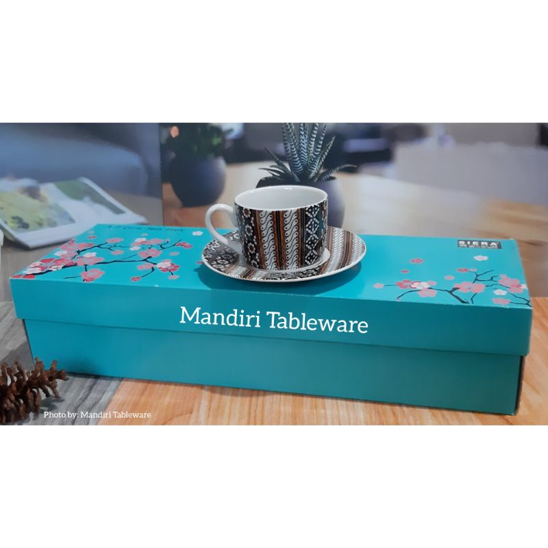 6 psg Cangkir Set Keramik | Motif Batik Mondokan | Cangkir Kopi | Cangkir Teh