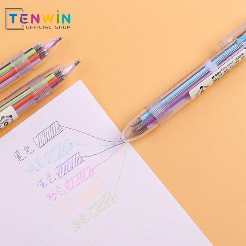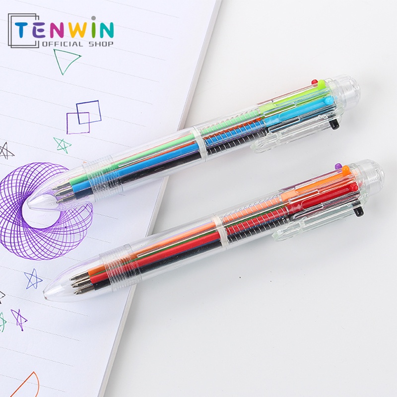 6 warna pulpen Ball Pen / Pulpen / Pena- Pulpen 6 Warna Transparan Pena Ballpont Pen Six-in-One Color-Tenwin