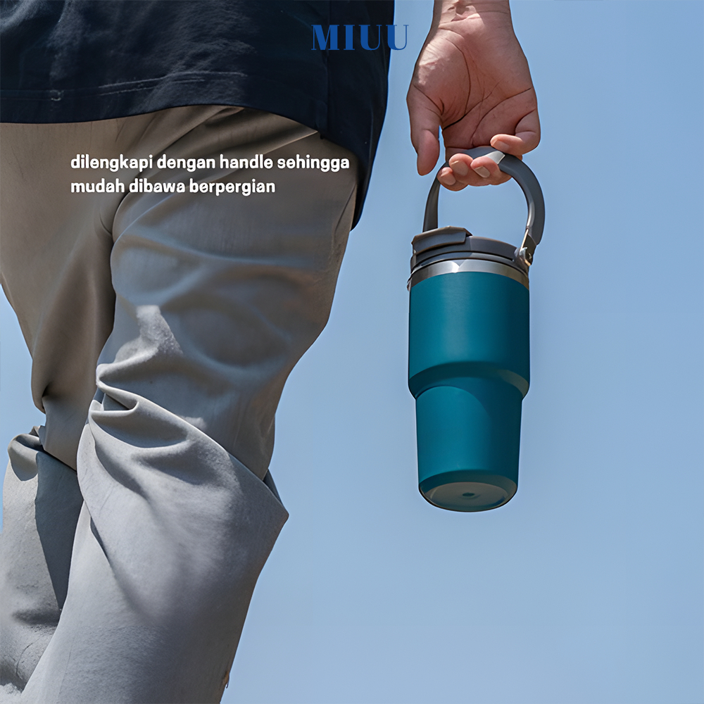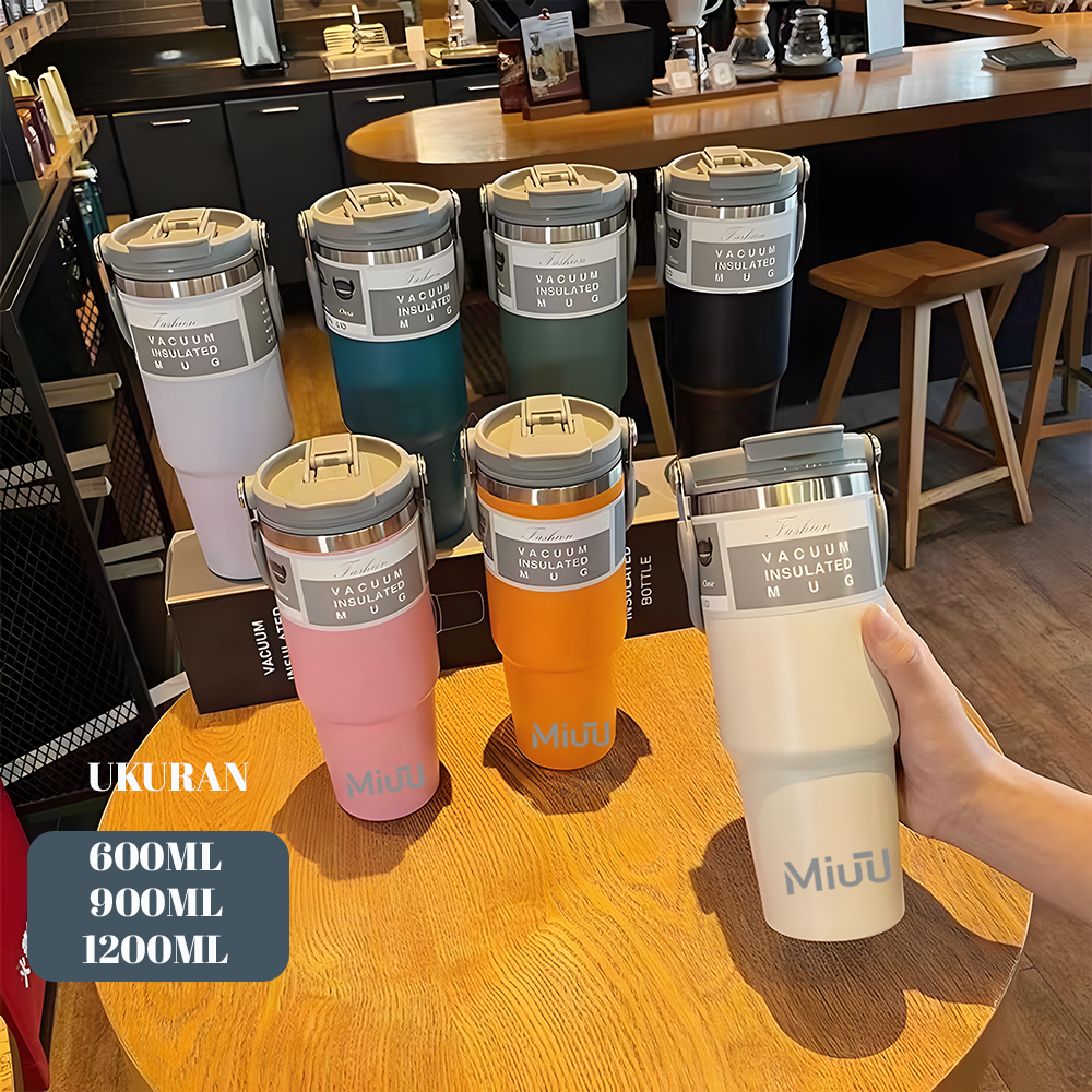 600ml/900ml/1200ml Tumbler handle 2in1 ORIGINAL / botol minum portable teh kopi fitness stainless steel vacuum insulated thermos / tea