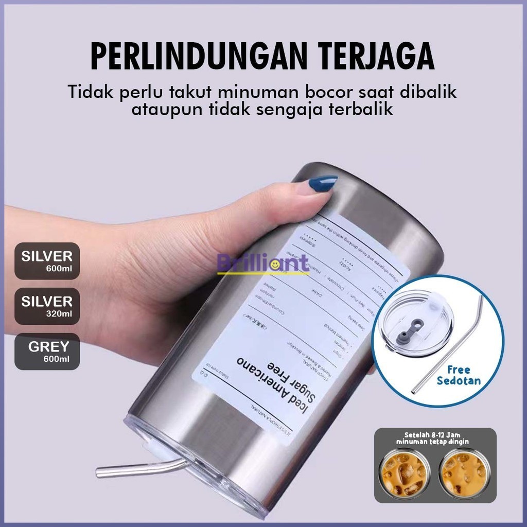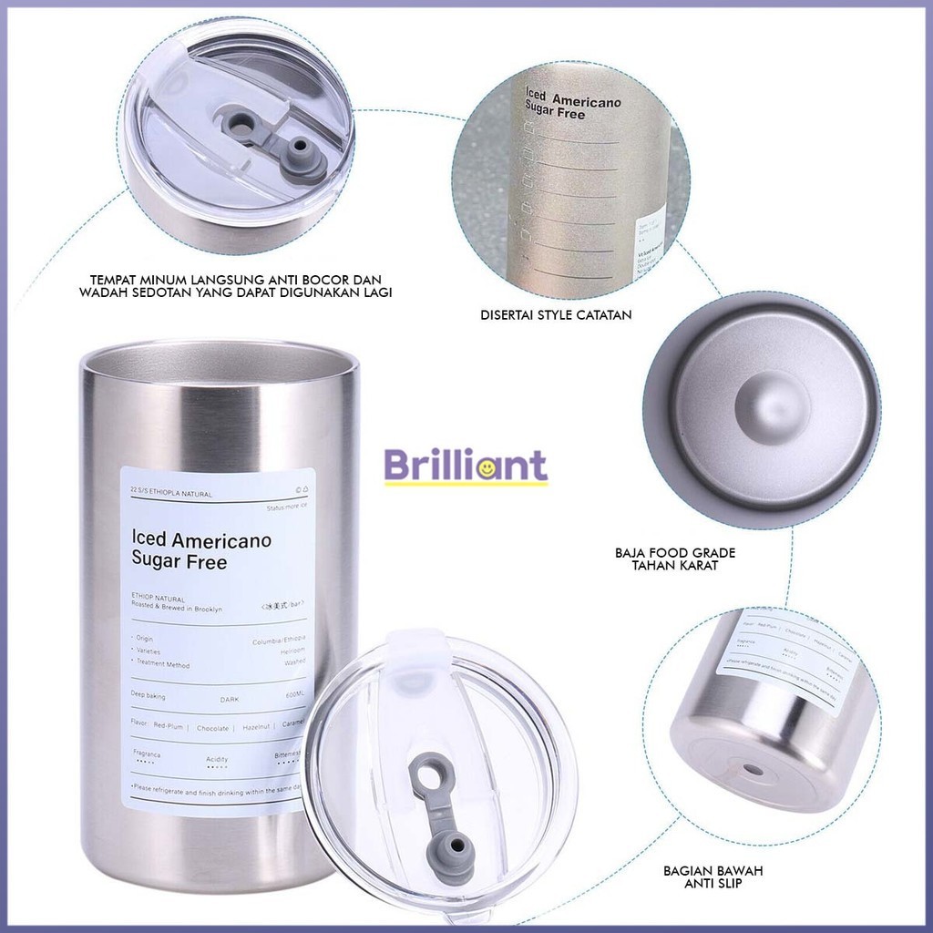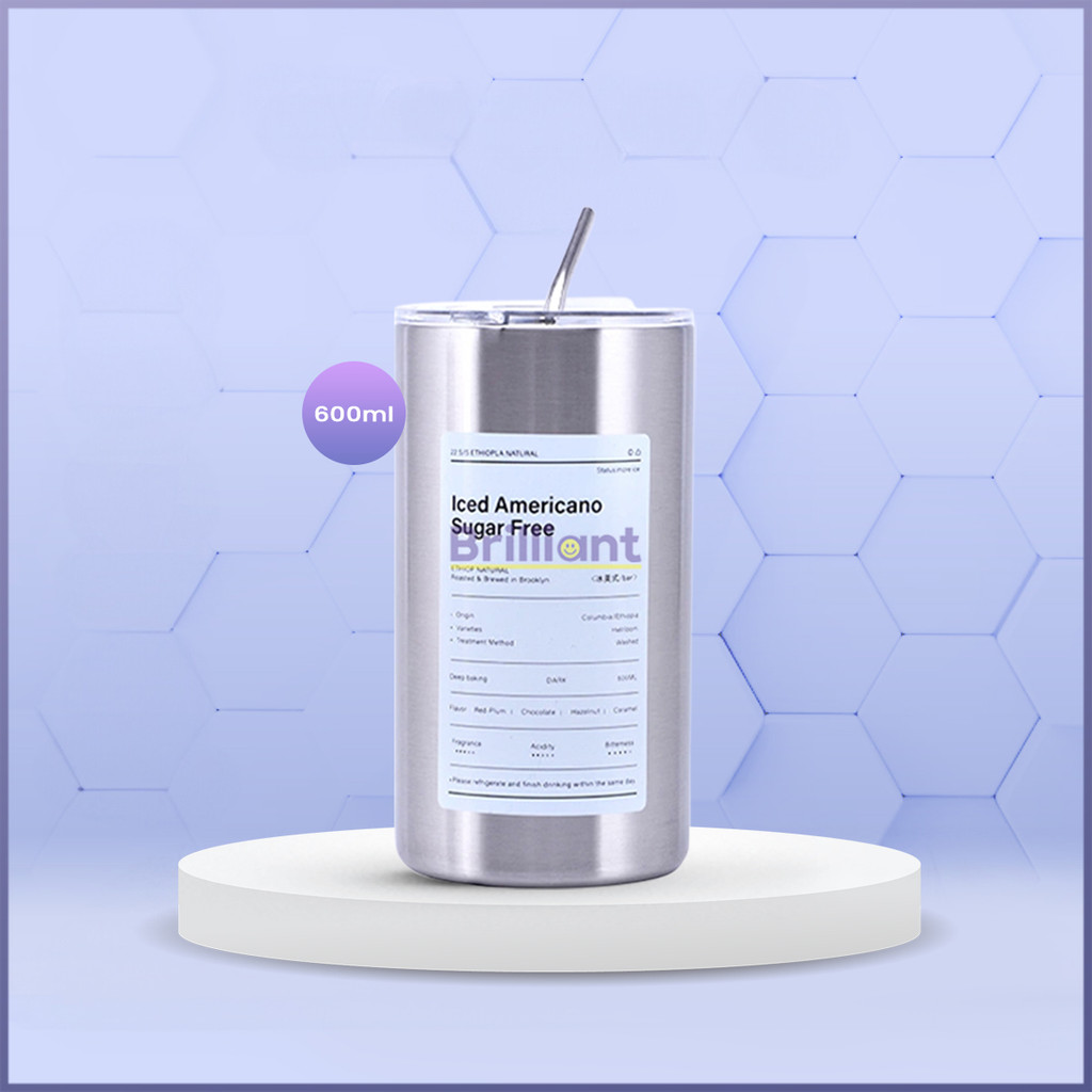 600ml Botol Minum Stainless Steel/Tumbler Coffee Cup /Gelas Stainless Steel Tumblr/Aesthetic Botol Minum Kopi/Stainless Steel Cangkir Tumbler Kopi Cup+Free Sedotan Botol