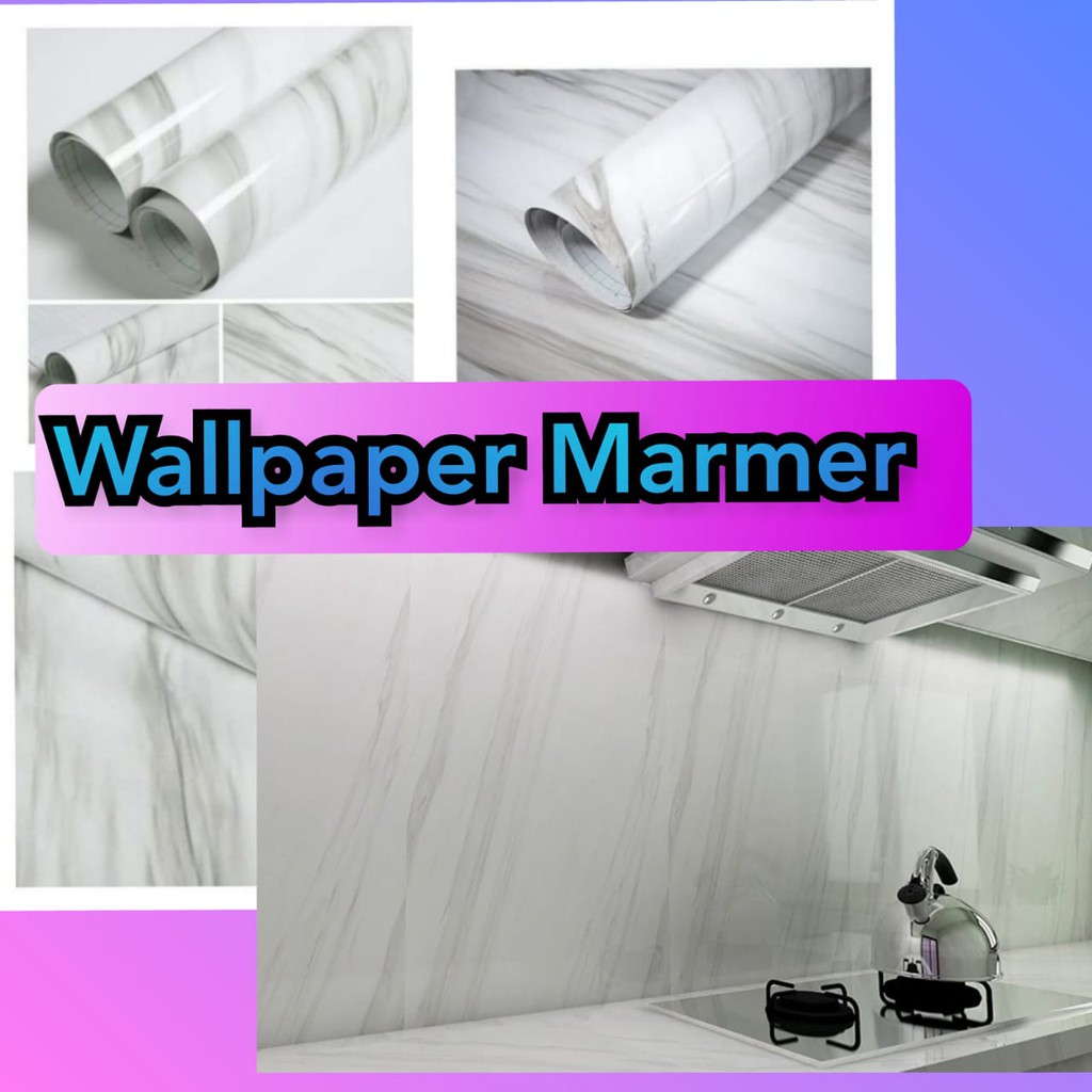 60CMX5METER WALLPAPER GLOSSY MARBEL PREMIUM MARMER KITCHEN SET WALLPAPER STICKER DINDING 079 PUTIH