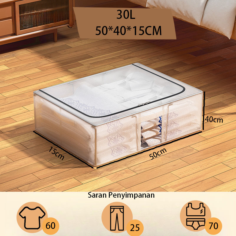 60L/80L/90L Di bawah tempat tidur kotak penyimpanan storage box transparan yang tahan kelembaban box penyimpanan berkapasitas besar tempat penyimpanan serbaguna lemari plastik susun