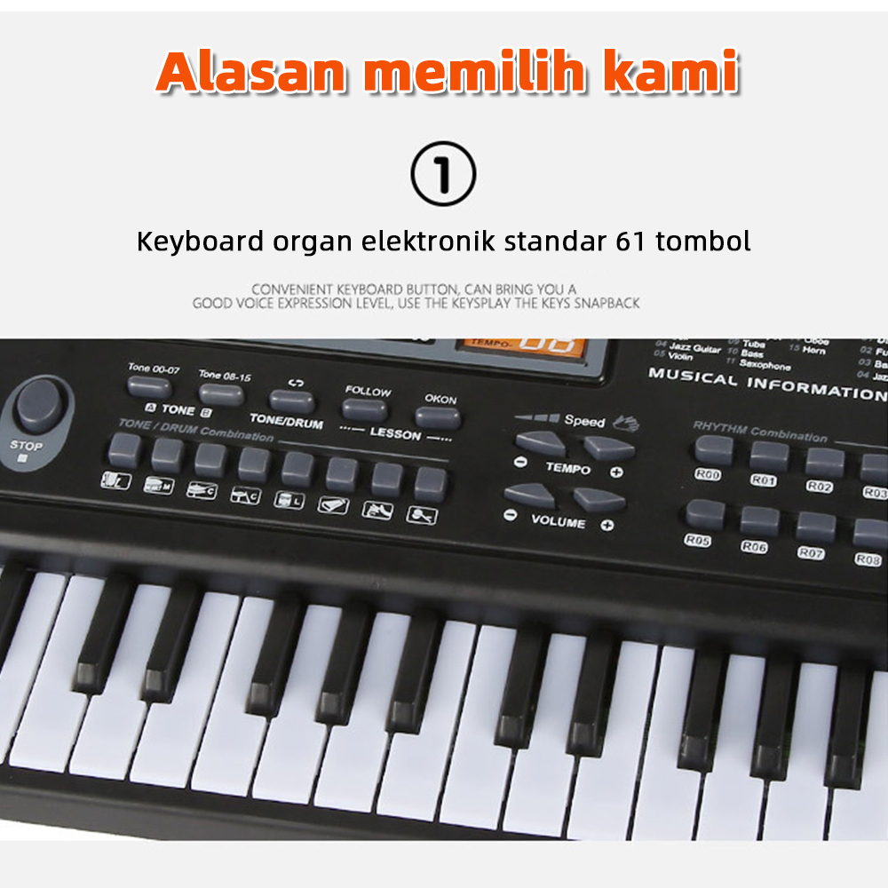 61 Tombol Hitam Musik Digital Keyboard Elektronik KeyBoard Piano Listrik Hadiah Anak-anak Alat Musik