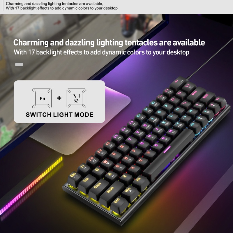 63 Keys Titan Elite Keyboard Gaming Mechanical Keyboard Rainbow Dynamic Light Dual Color Injection Molding