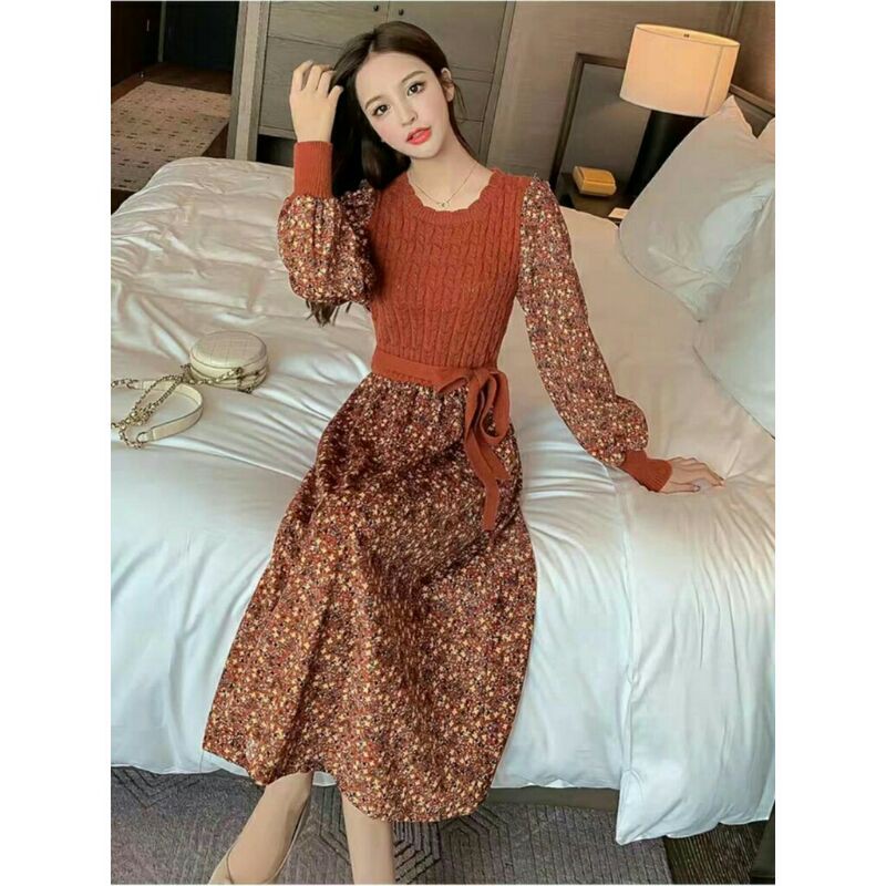 65000 Baju midi dress gaun pesta party kondangan Korean style casual cewek import baju mididress Midi dress santai pesta wanita import korea kekinian fashion remaja perempuan Korea terbaru tosca bata brick cream