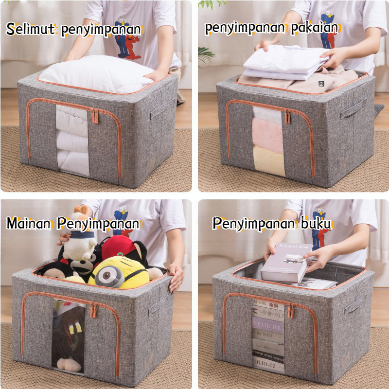 66L/110L kapas dan rami box penyimpanan tahan lembab storage box boxcontainer box Lipat kotak penyimpanan frame baja mainan organizer box