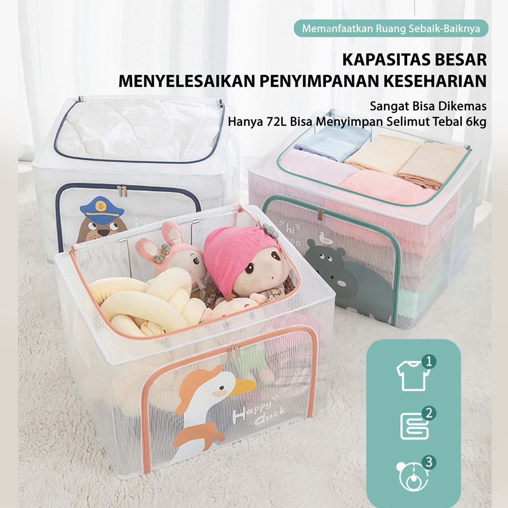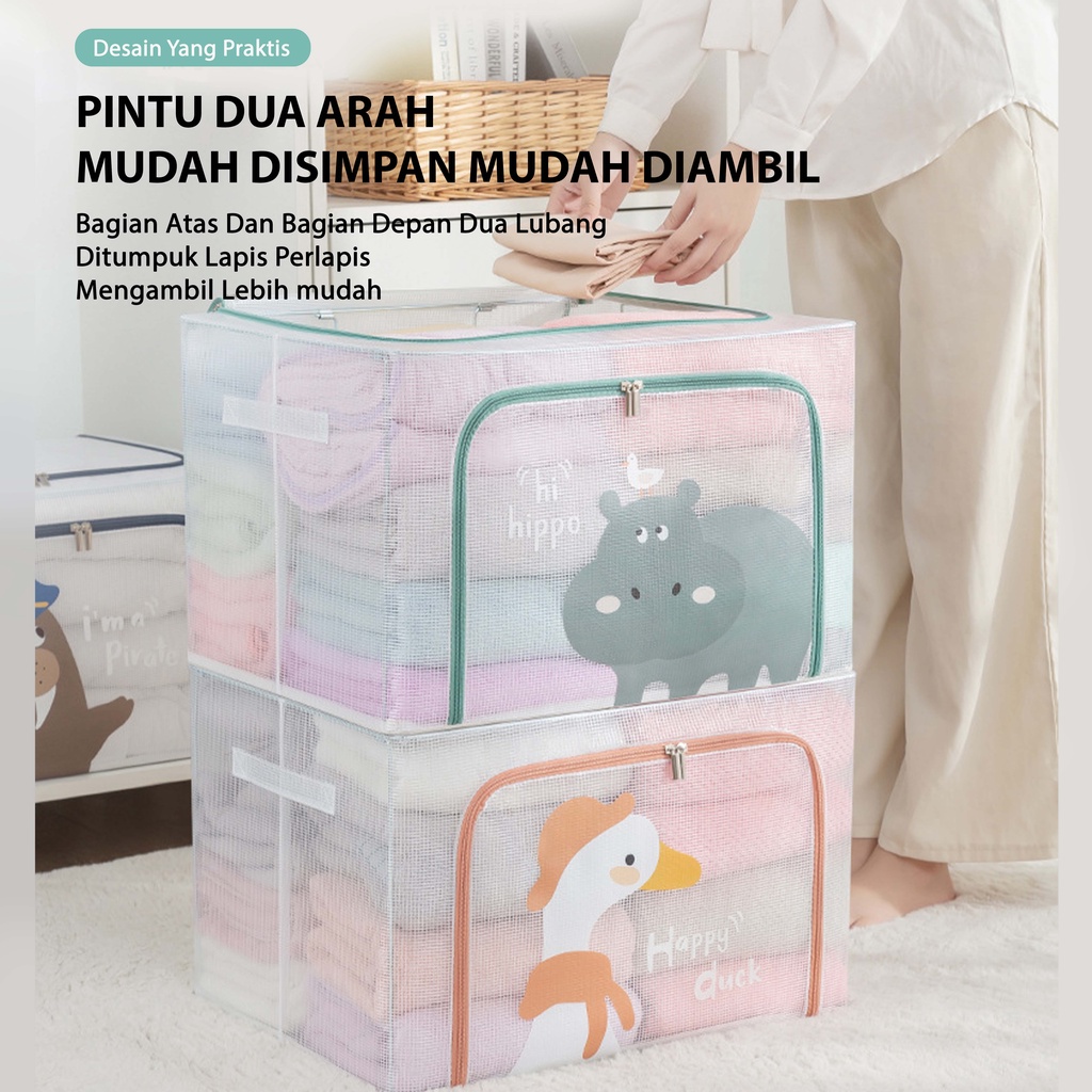 66L Lipat kotak penyimpanan pakaian serbaguna mainan box tahan lembab storage box baju besar organizer