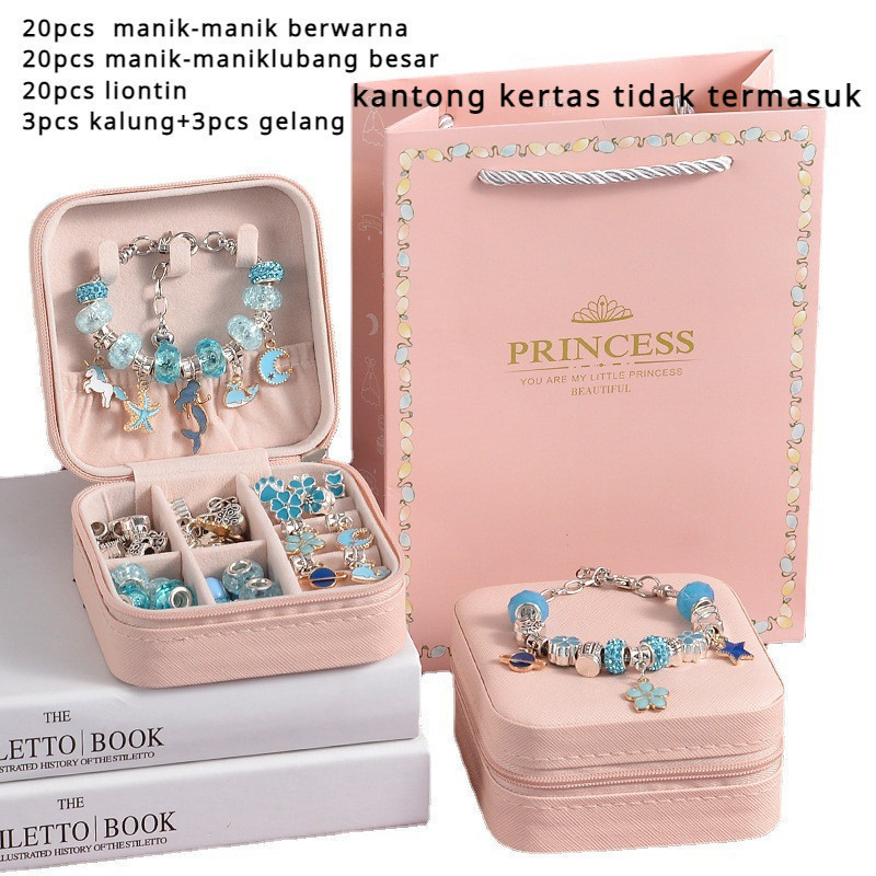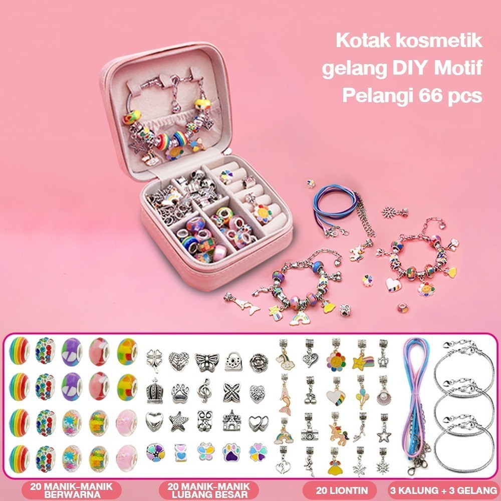 66pcs Aksesoris Gelang Pandora DIY Jewelry Bikin Aksesoris Prakarya Gelang Anak Set DIY Bracelet Accessories Anak Hadiah Mainan Perempuan