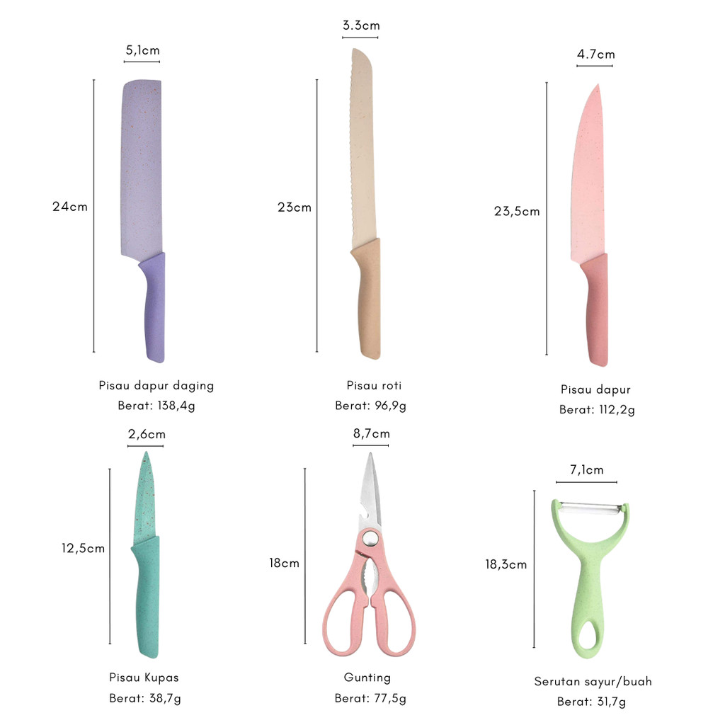 ANQI SHOP 6IN1 Pisau Set EVCRIERH Stainless Dilapis Anti Lengket /Peralatan Masak Pisau Set / VS