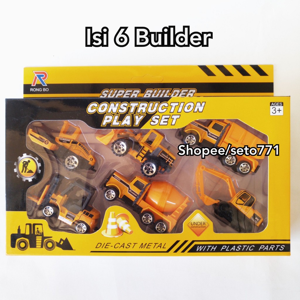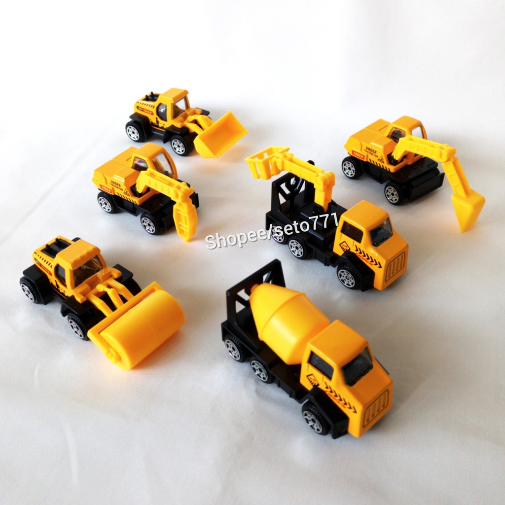 6pcs MINI METAL Die cast Construction Diecast Konstruksi Engineering Excavator Buldozer Crane Dump