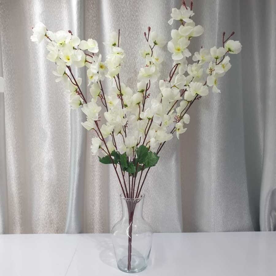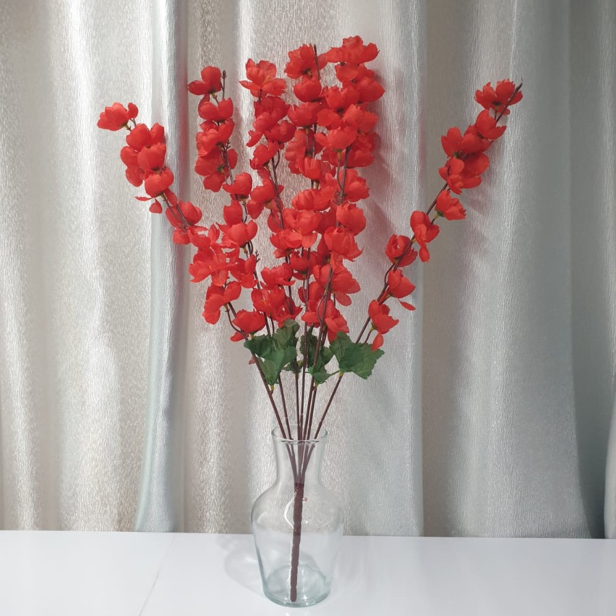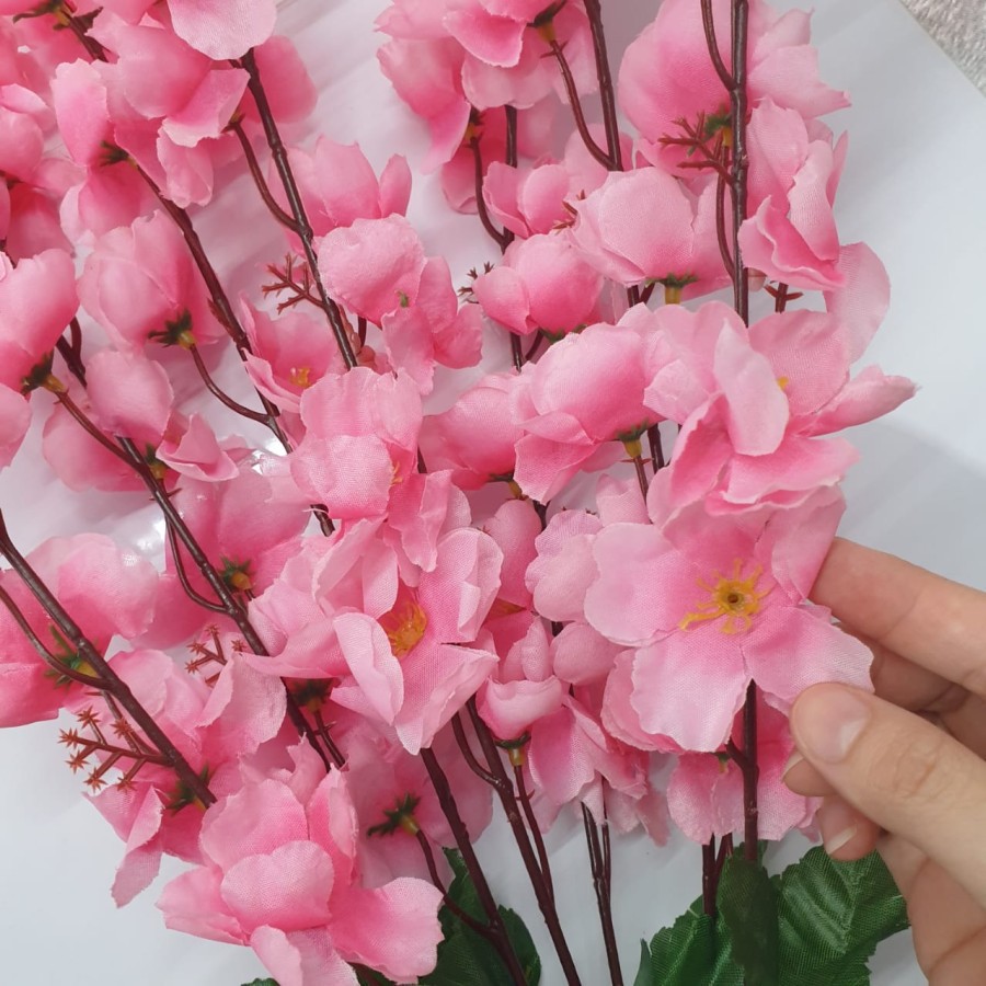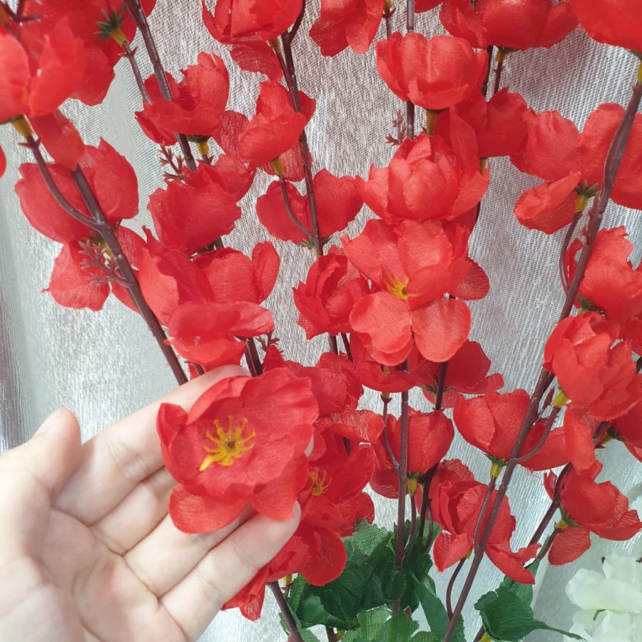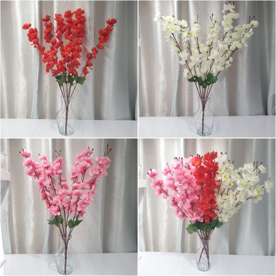 7 Tangkai Tanaman Bunga Artificial Sakura Mei Hua Hiasan Dekorasi Parcel Imlek Pink Merah Putih