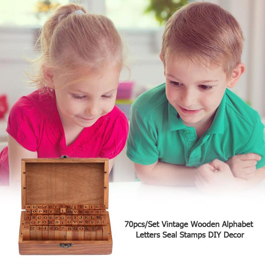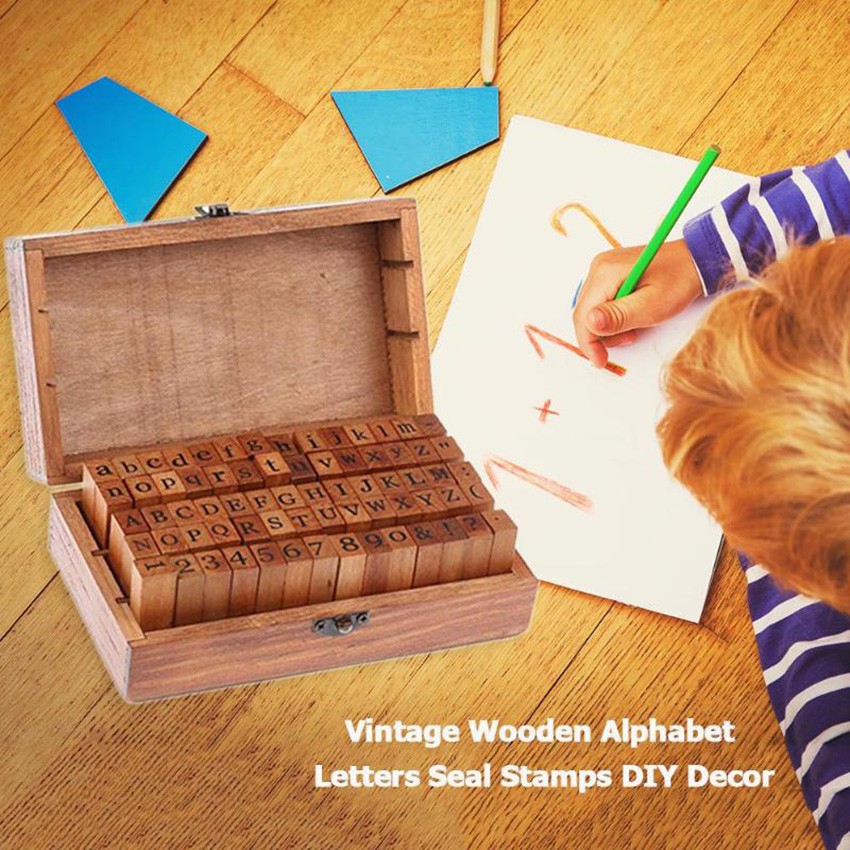 70Pcs Cap Stampel Huruf Alfabet Dan Angka Kayu Alphabet Stamp Dengan Kotak Alat Ketok Huruf Angka