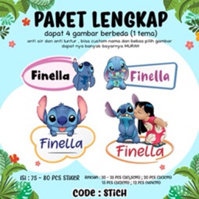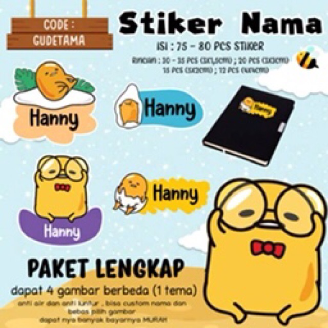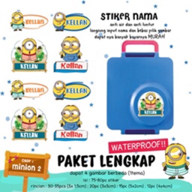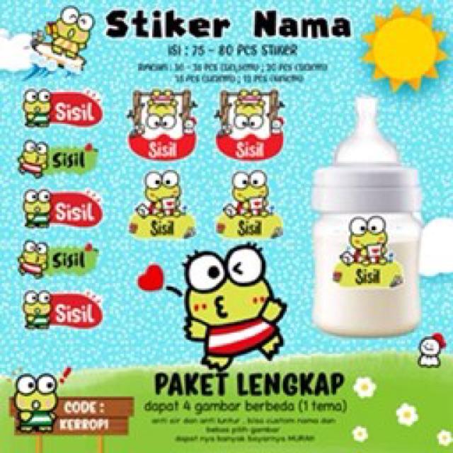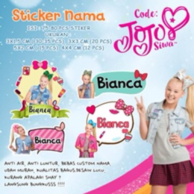 70Pcs Stiker Nama Custom spongebob/ballerina/gudetama/jojo siwa/kerropi/minion/hotwheels