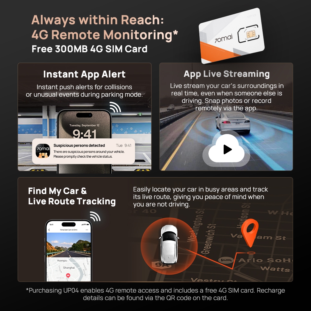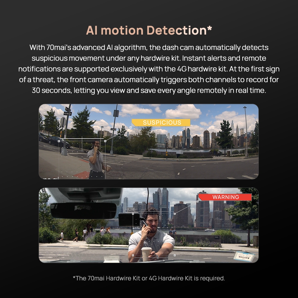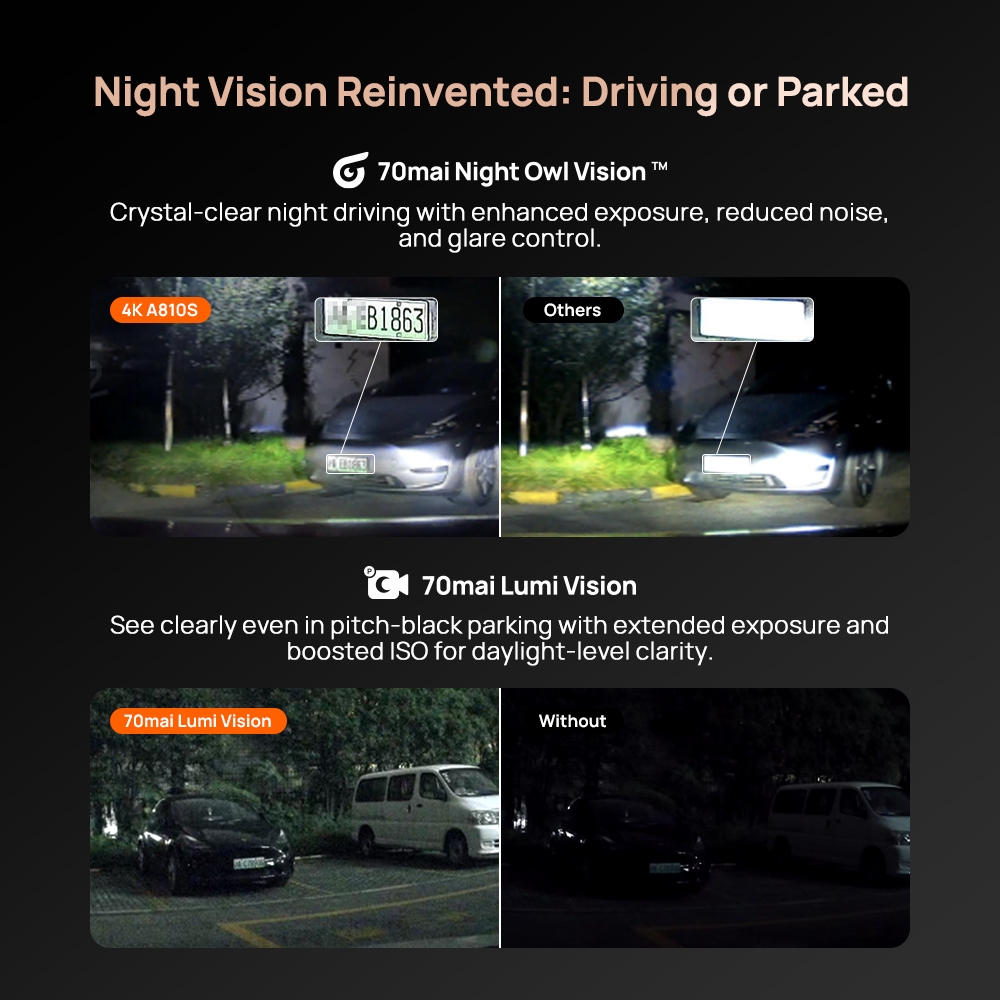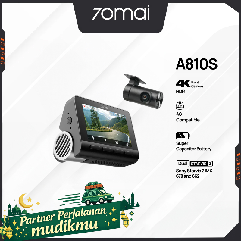 70mai Dash Cam 4K A810S Set 4G Live Control Front 4K Rear HDR 1080P Built-in GPS Supercapacitor ADAS Dashcam Mobil