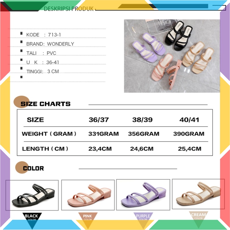 713-1 Sandal Sepatu Wedges Wanita Ban 2 Wonderly Sendal Selop Cewek Jelly Karet Tawana