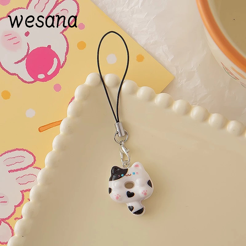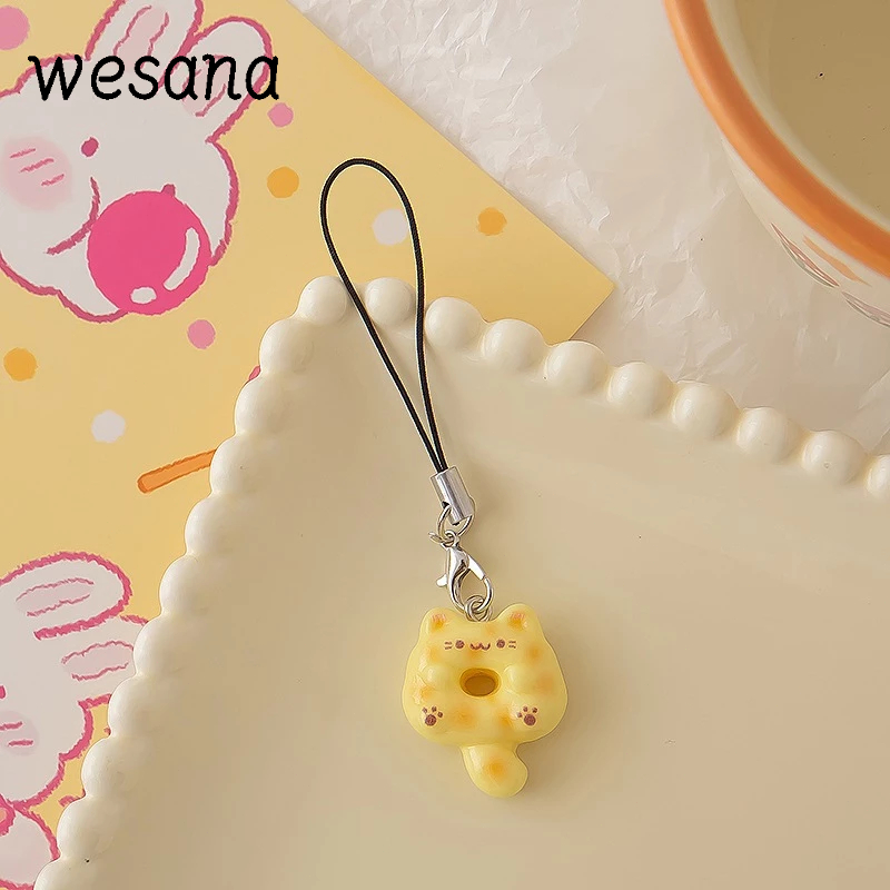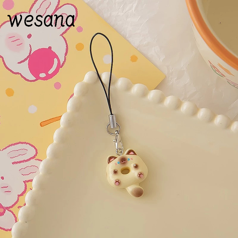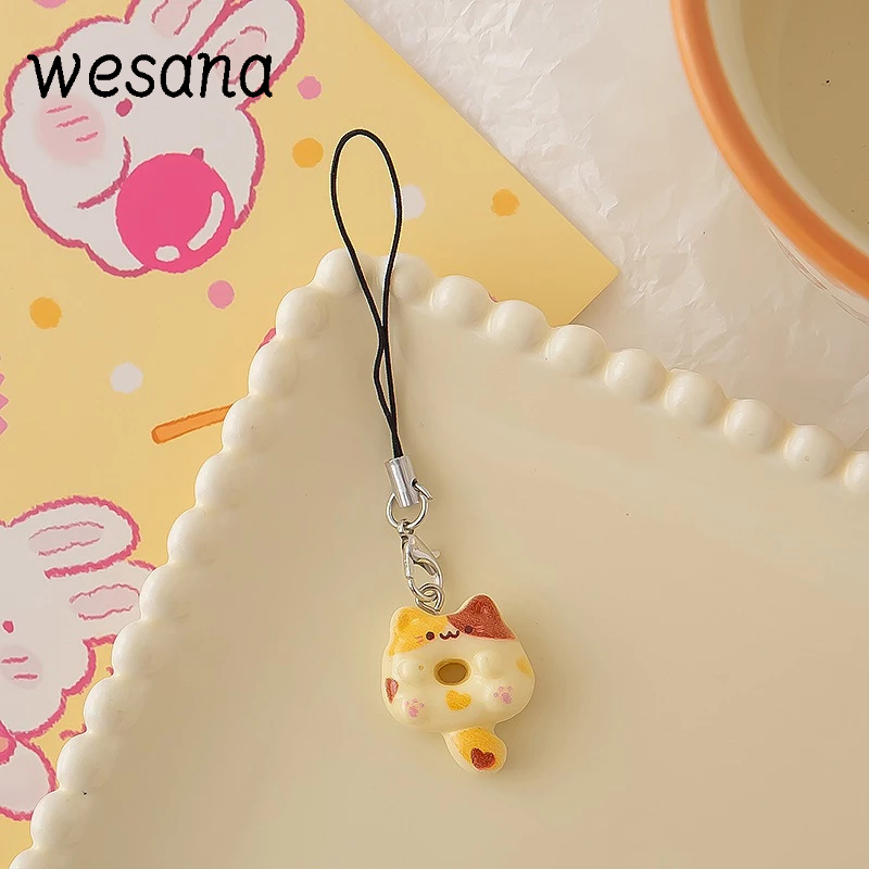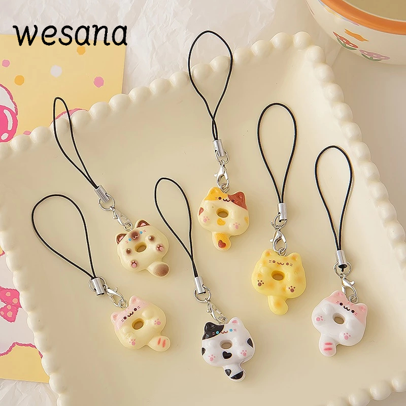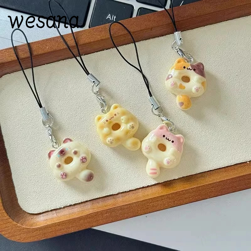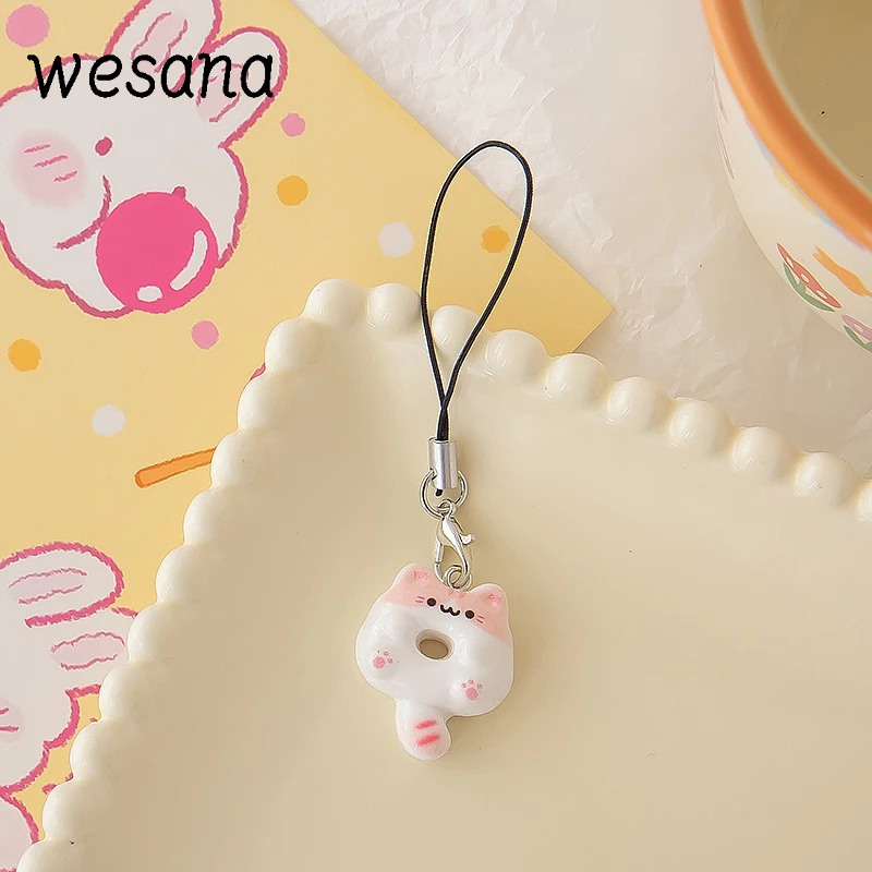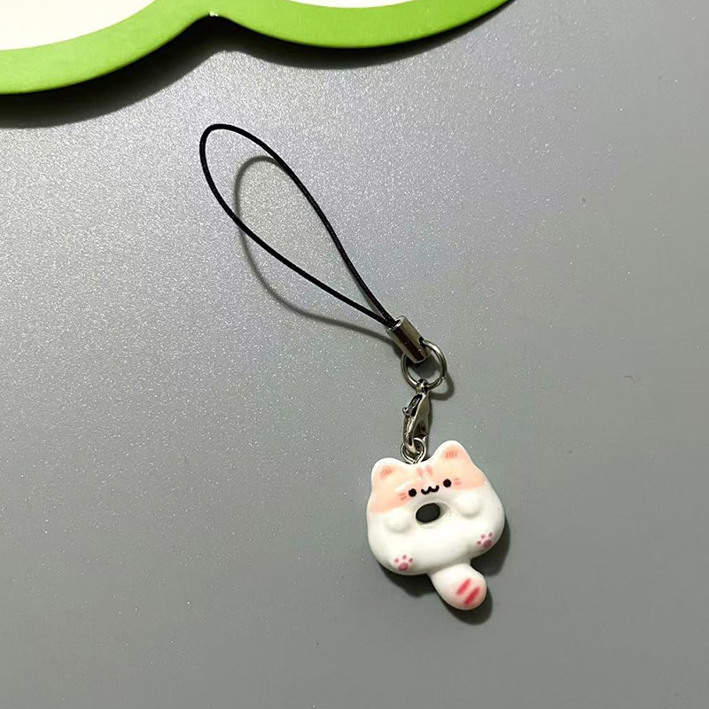 Lanyard hp Cute Cat Doughnut Gaya Peri Manis Gantungan hp Lucu Kucing Resin Phone Strap -WE