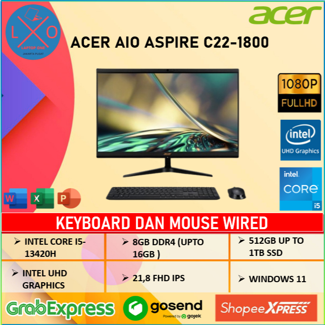 PC AIO ACER C22 1800 I5 13420H 8GB DDR4 512GB SSD W11H OHS21 BLACK
