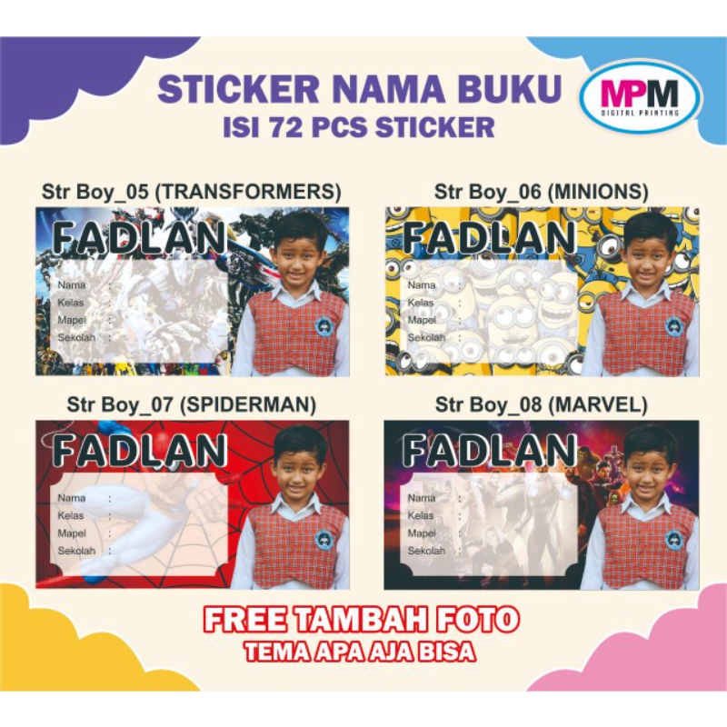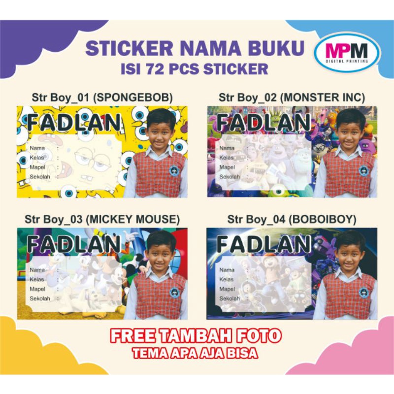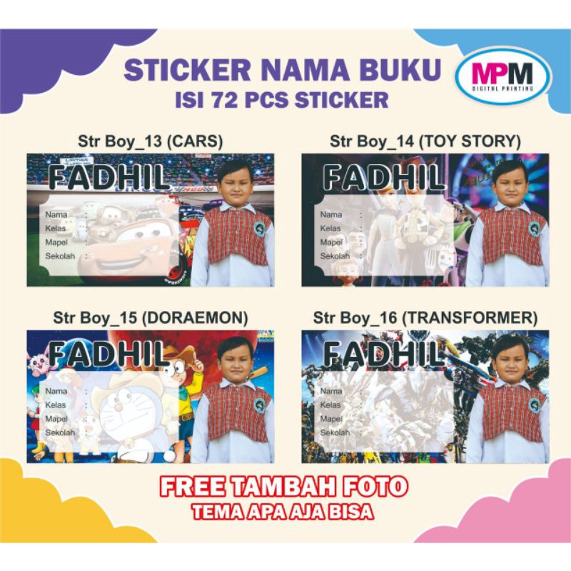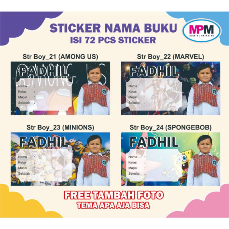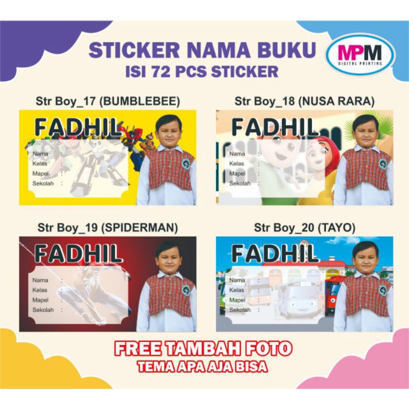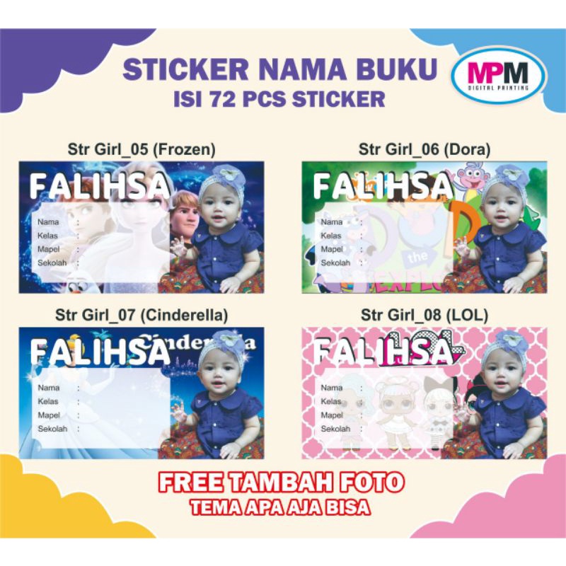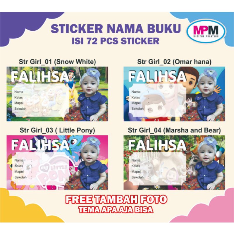 72 PCS Stiker Nama Buku / Stiker Custom Nama Buku Sekolah Anak
