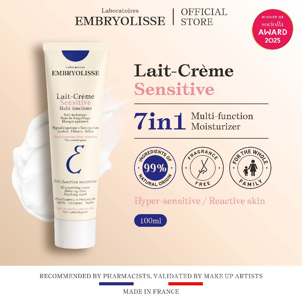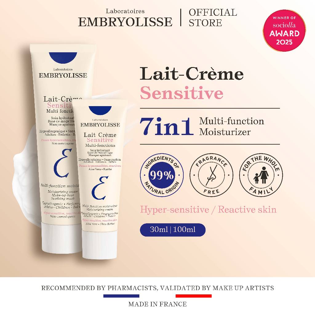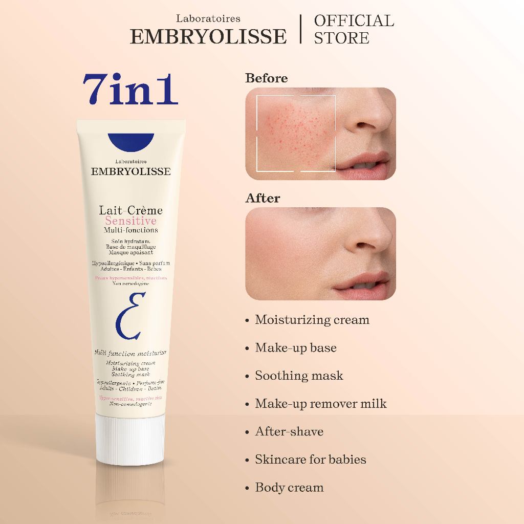 Embryolisse Lait-Creme Sensitive 30/100ml 7 IN 1 Pelembab Moisturizer Wajah Makeup Cleanser Remover Makeup Base Primer Masker Wajah