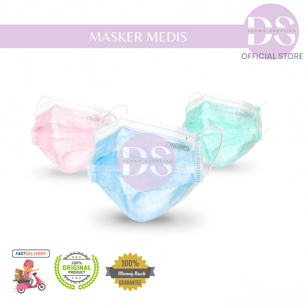 Face Mask Onemed 3 Ply Box Isi 50 - Masker medis Onemed Earloop (warna random)