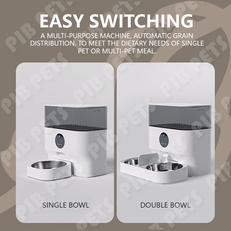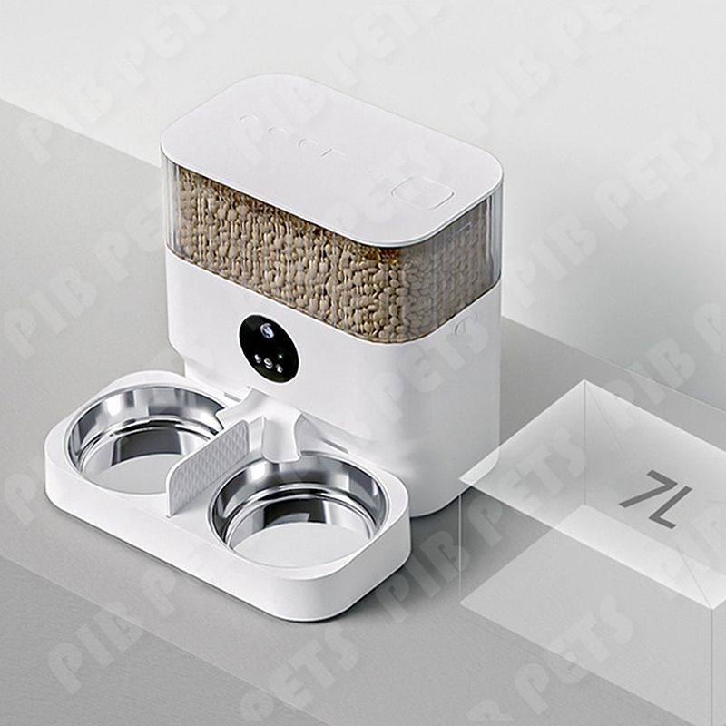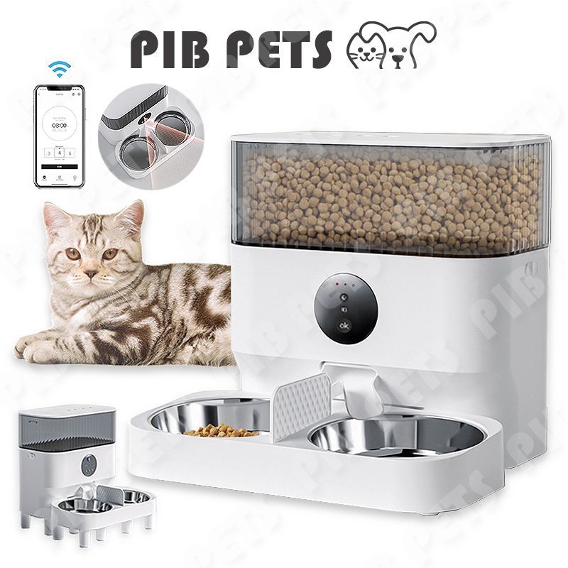 7L App+Camera Automatic Pet Feeder Kucing Otomatis Dispenser Kucing Otomatis Tempat Makan Kucing Stainless 2 Bowls