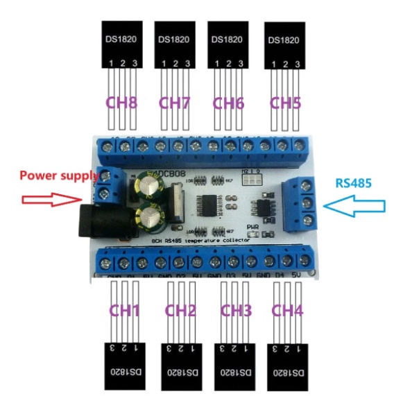 8 Ch DS18B20 RS485 Modbus RTU Temperature Sensor Remote acquisition