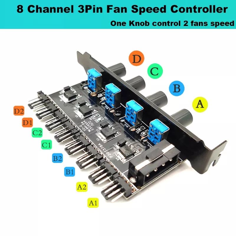 8 Ports 3 Pin 4Pin 12V Fan Hub Cooling Fan Speed Controller