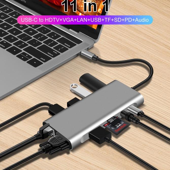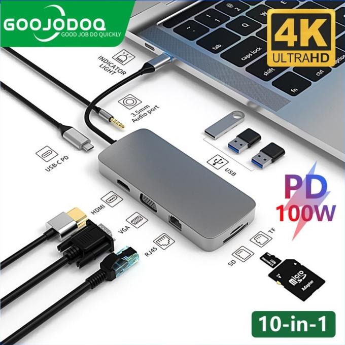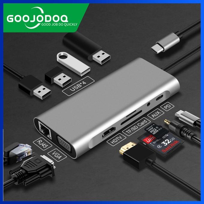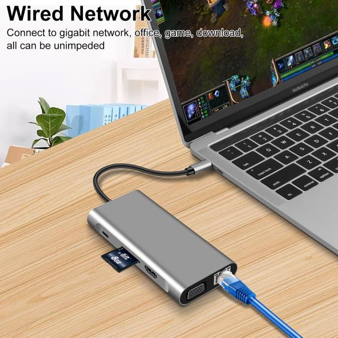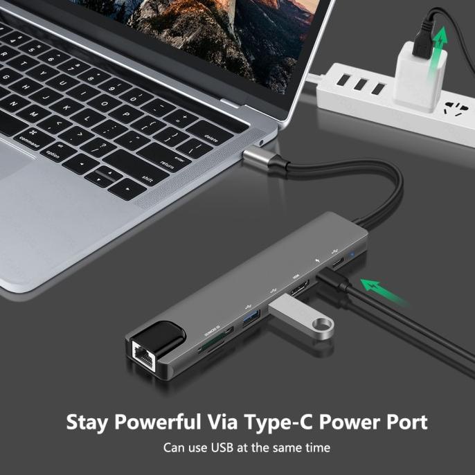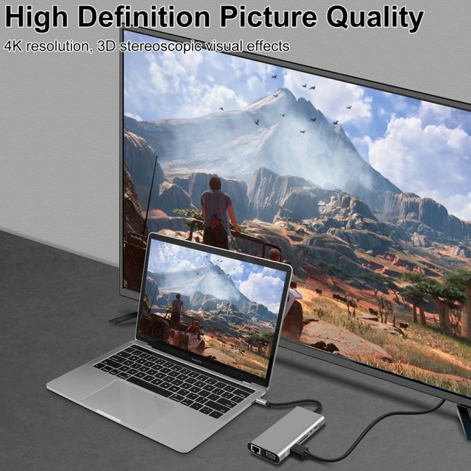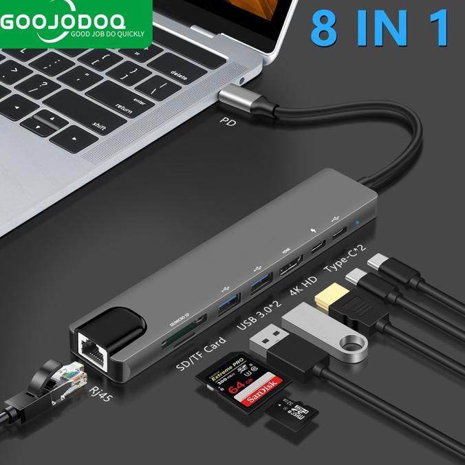 8-in-1 USB C Hub Type-C 3.1 to 4K HDMI RJ45 SD/TF Card Reader PD Dock