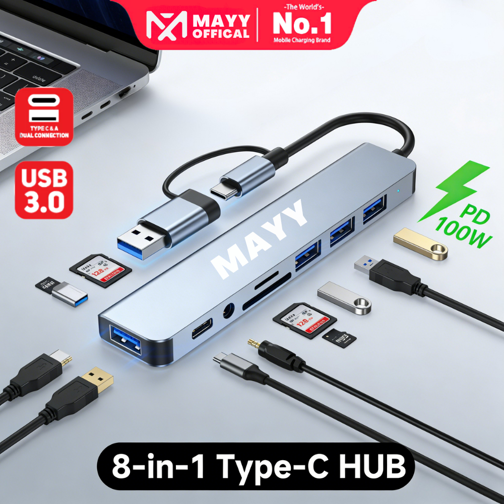 Mayy Official Id 8 in 1 Usb HUB 3.0 Type C Ke Usb adapter/Pasang dan mainkan/ Type C Ke Usb 3.0 Hdmi Pd 8 In 1 MM