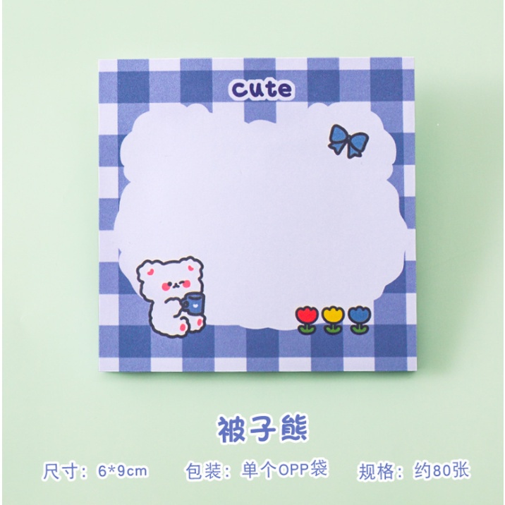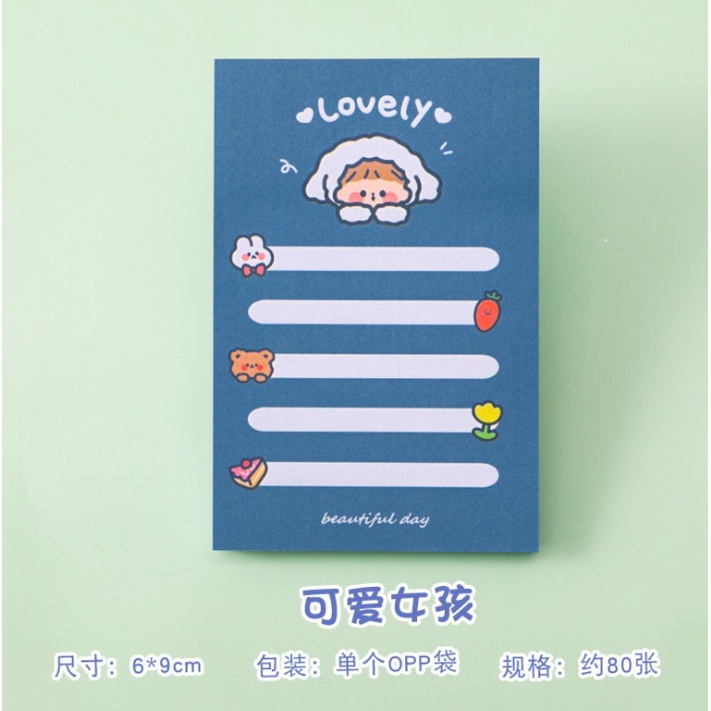 80 LEMBAR STICKY NOTE BEAUTIFUL BLUE BEAR GIRL BIRU BULLET JURNAL DIY DIARY NOTE MEMO LUCU MURAH