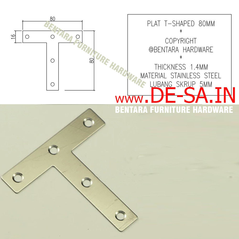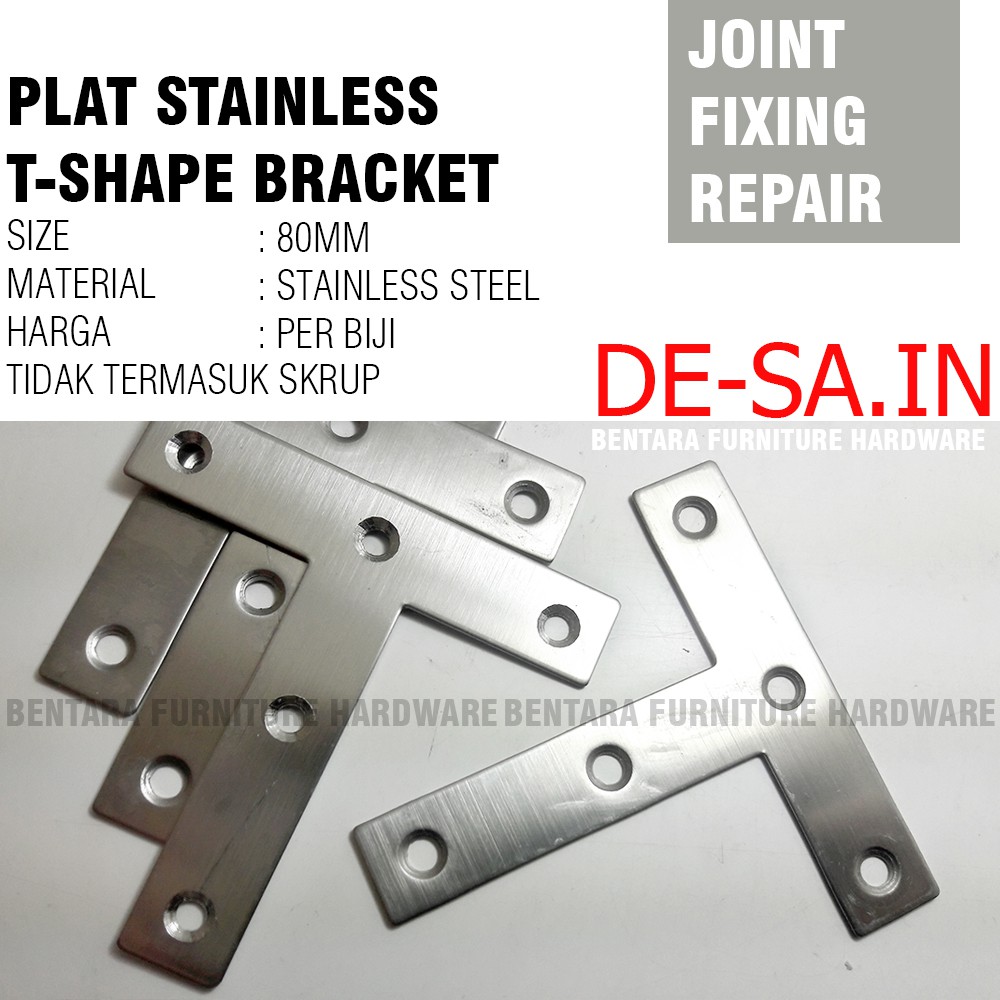 80MM T-SHAPE BRAKET PLAT STAINLESS STEEL BRACKET FLAT REPARASI JOINT FIXING REPAIR PLS