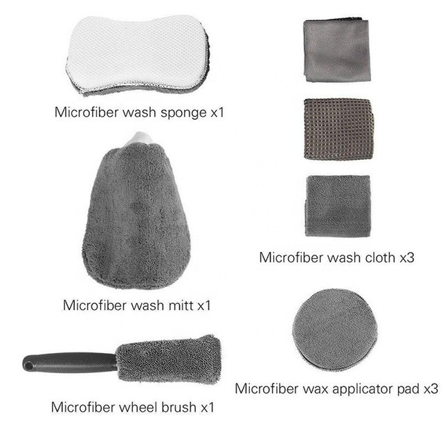 9 Pcs Car Wash Microfiber Set / Kain Lap Cuci Mobil Premium Quality