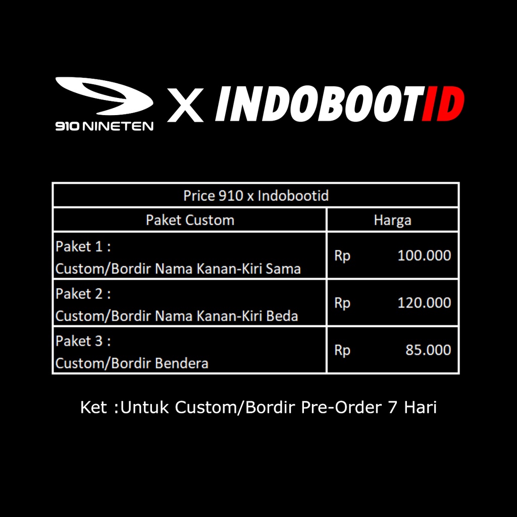 910 Nineten Jasa Bordir Sepatu x Indoboot - Custom ( Nama,inisial,Nomer, dll )