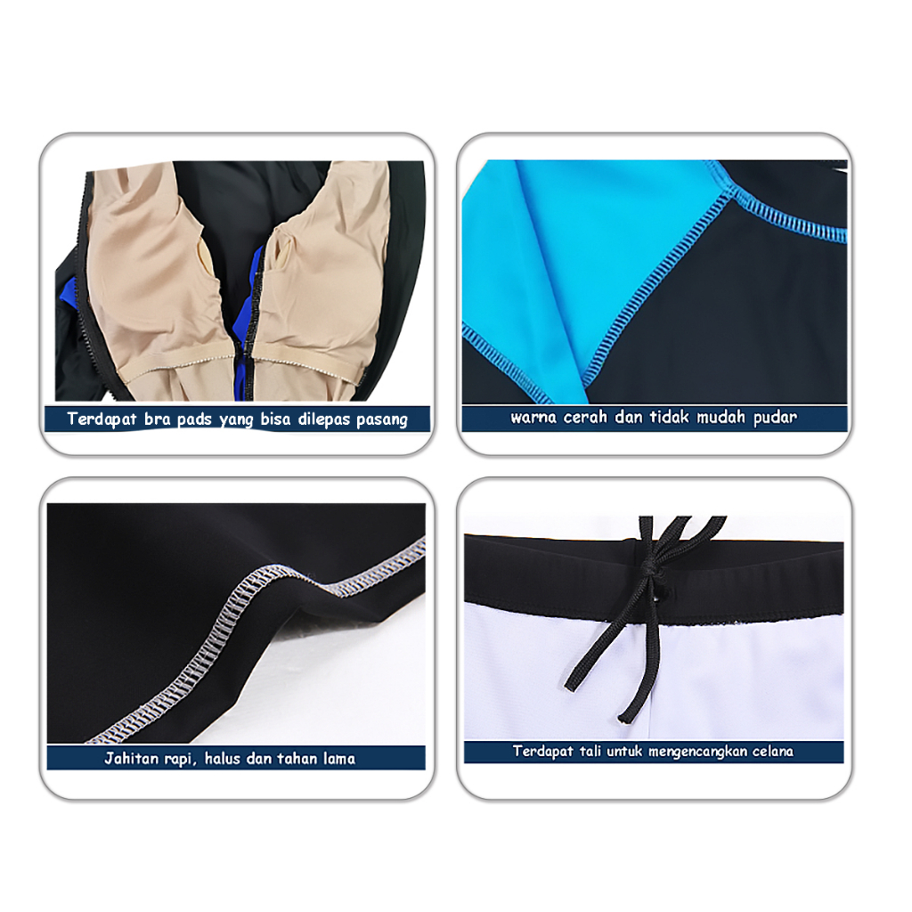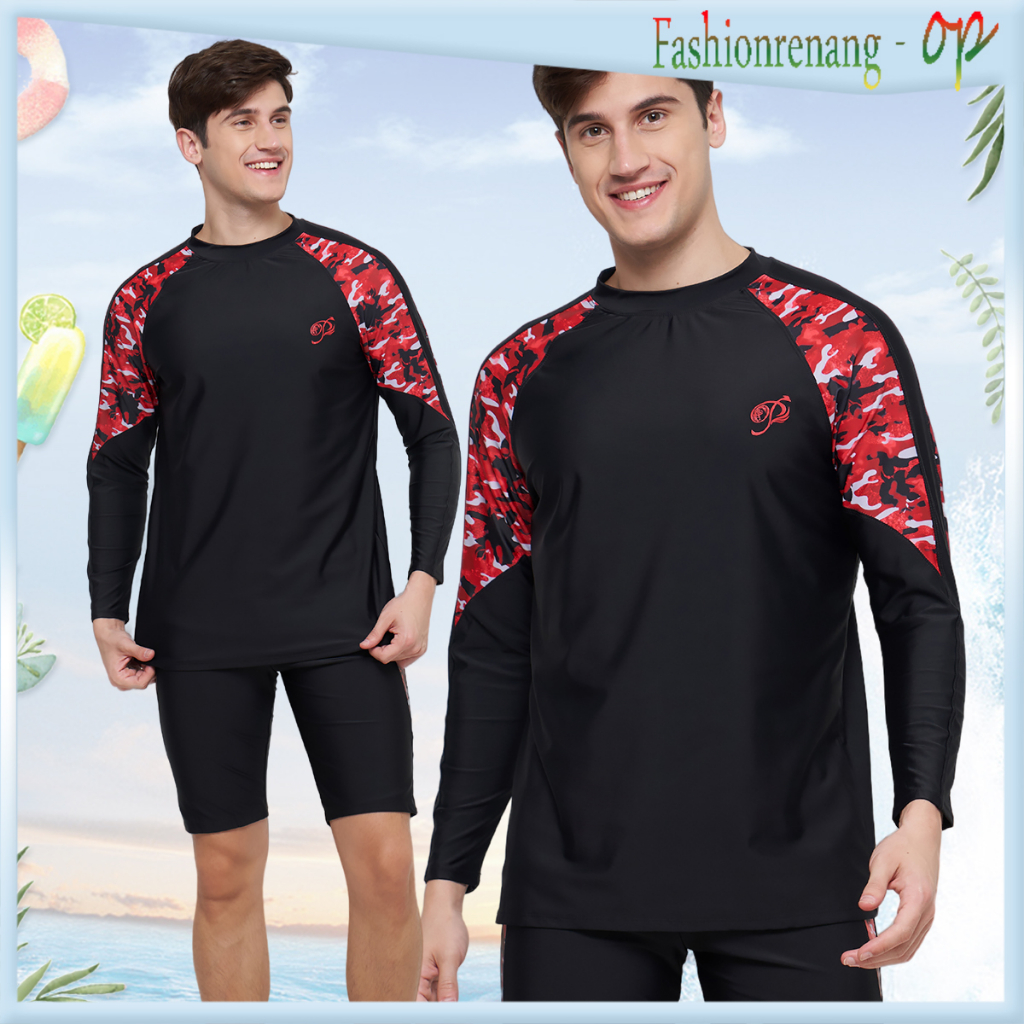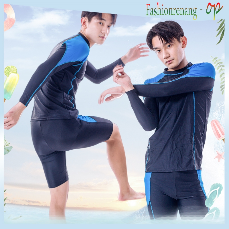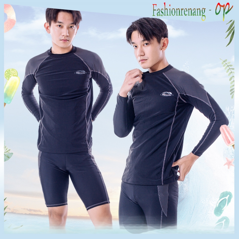 91024 Baju renang cowok/Baju renang pria satu set antiuv lengan panjang celana pendek