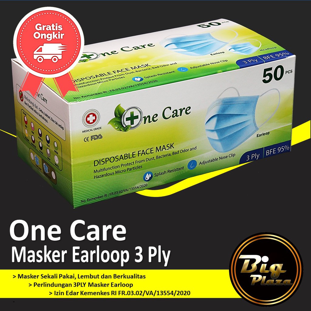 Masker NeCare Earloop 3ply isi 50 Pcs Ne Care - Big Plaza