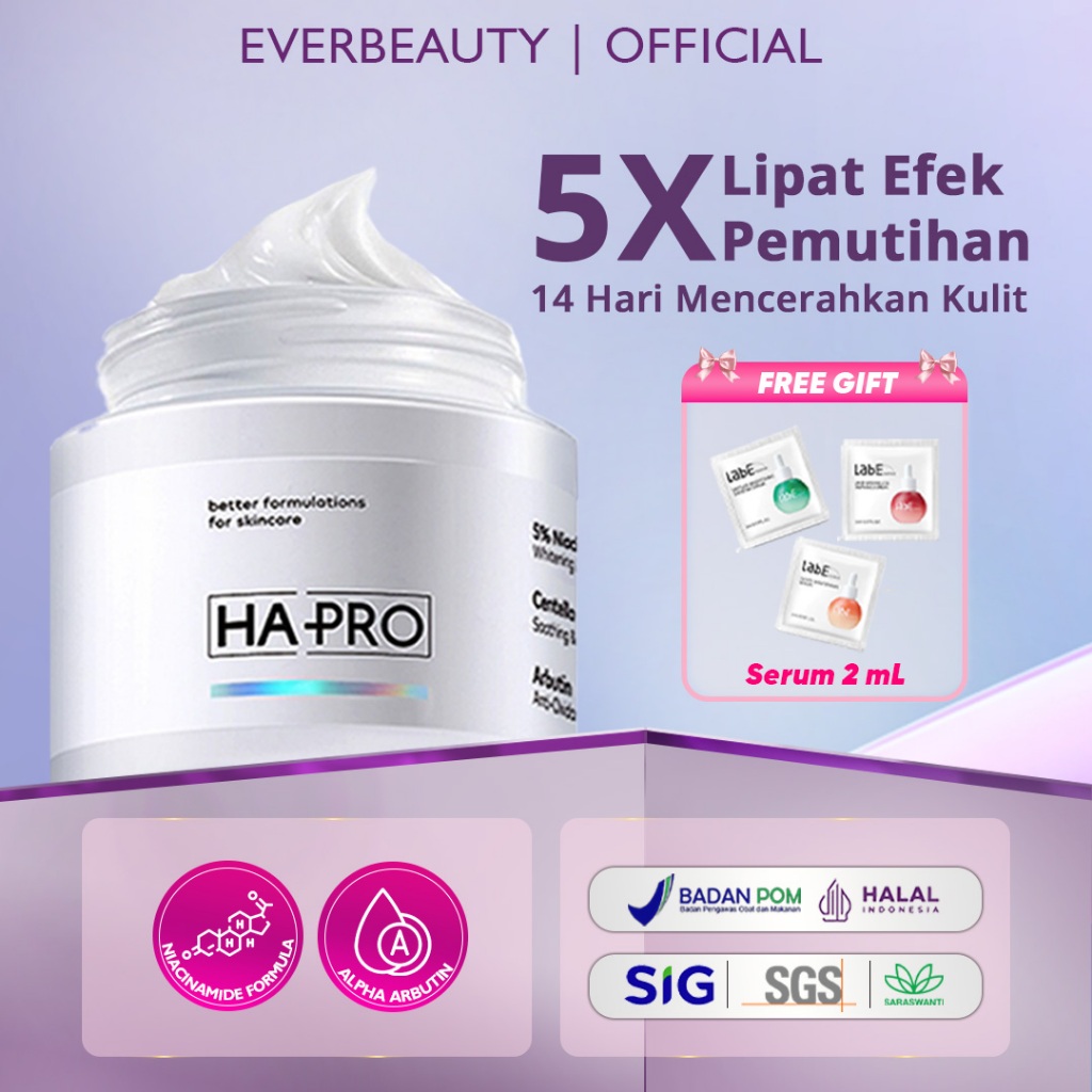 HA PRO Moisturizer Cream Glowing Day & Night Niacinamide & Alpha Arbutin Whitening 30gr Hyaluronic Acid Hydrating Brightening Moisturizer Gel Soothing Calming Pelembab Wajah Krim Pencerah Wajah